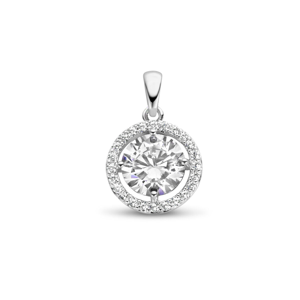 Rhodinierter 925er Silberanhänger mit wunderschönem Zirkonia. Der Anhänger hat eine Gesamthöhe von 17mm.