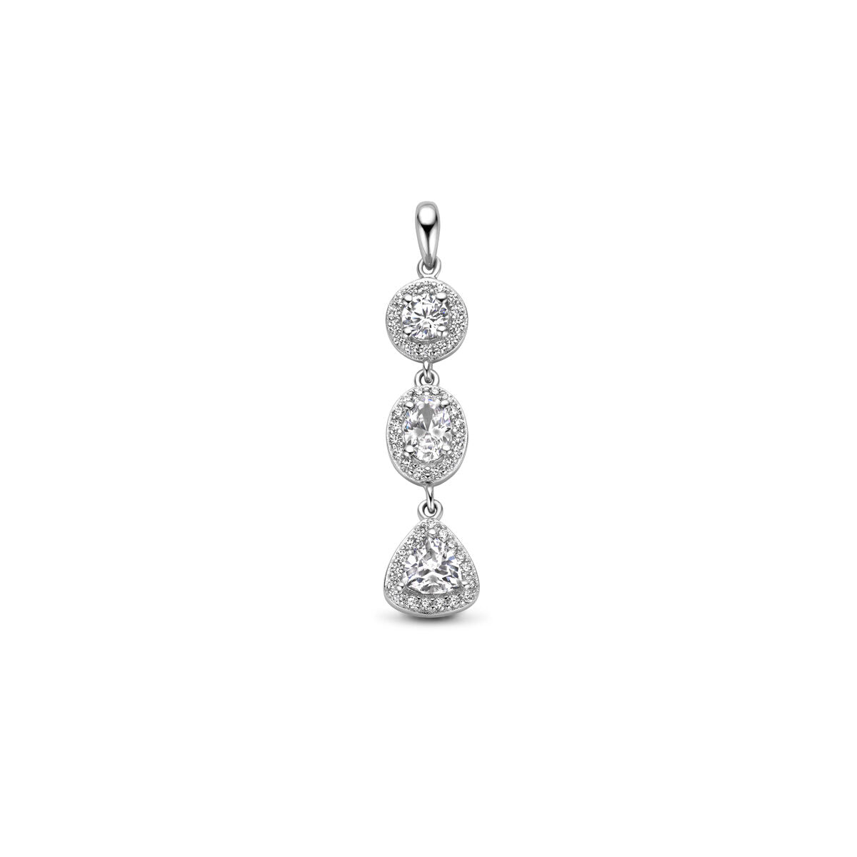 Rhodinierter 925er Silberanhänger mit Zirkonia. Der Anhänger hat eine Gesamthöhe von 37 mm.