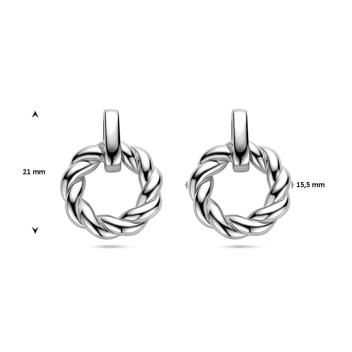 Ohrringe aus rhodiniertem 925er Silber mit Kreis. Die Ohrringe haben eine Gesamthöhe von 21 mm.