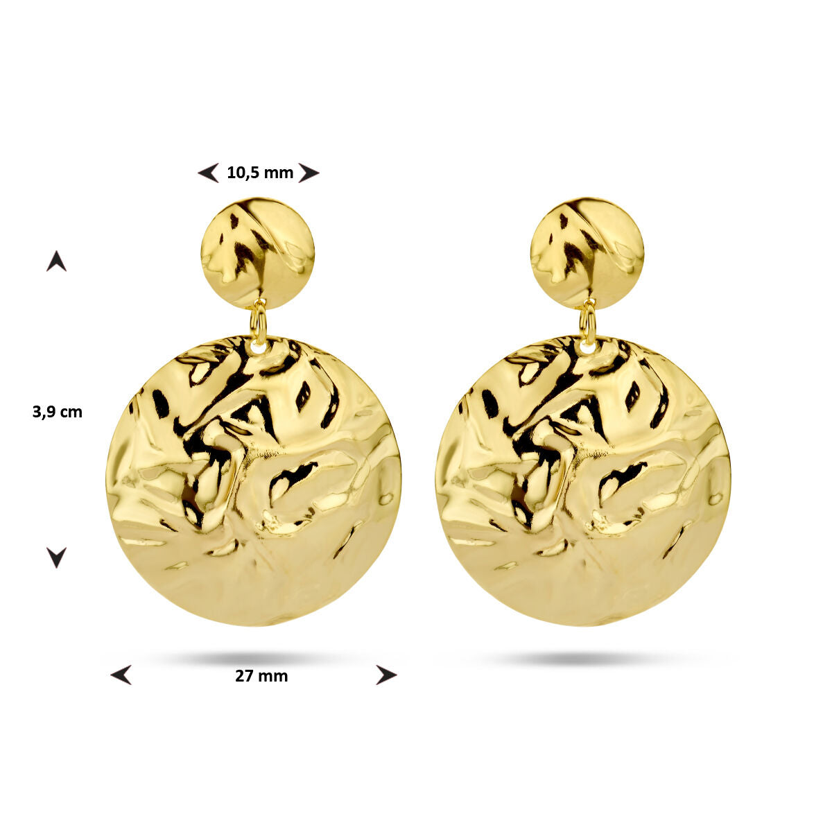 Runde Ohrringe aus Gelbgold auf 925er Silber. Die Ohrringe haben eine Gesamthöhe von 3,9 cm und eine Breite von 27 mm. Keine Garantie auf die Beschichtung.