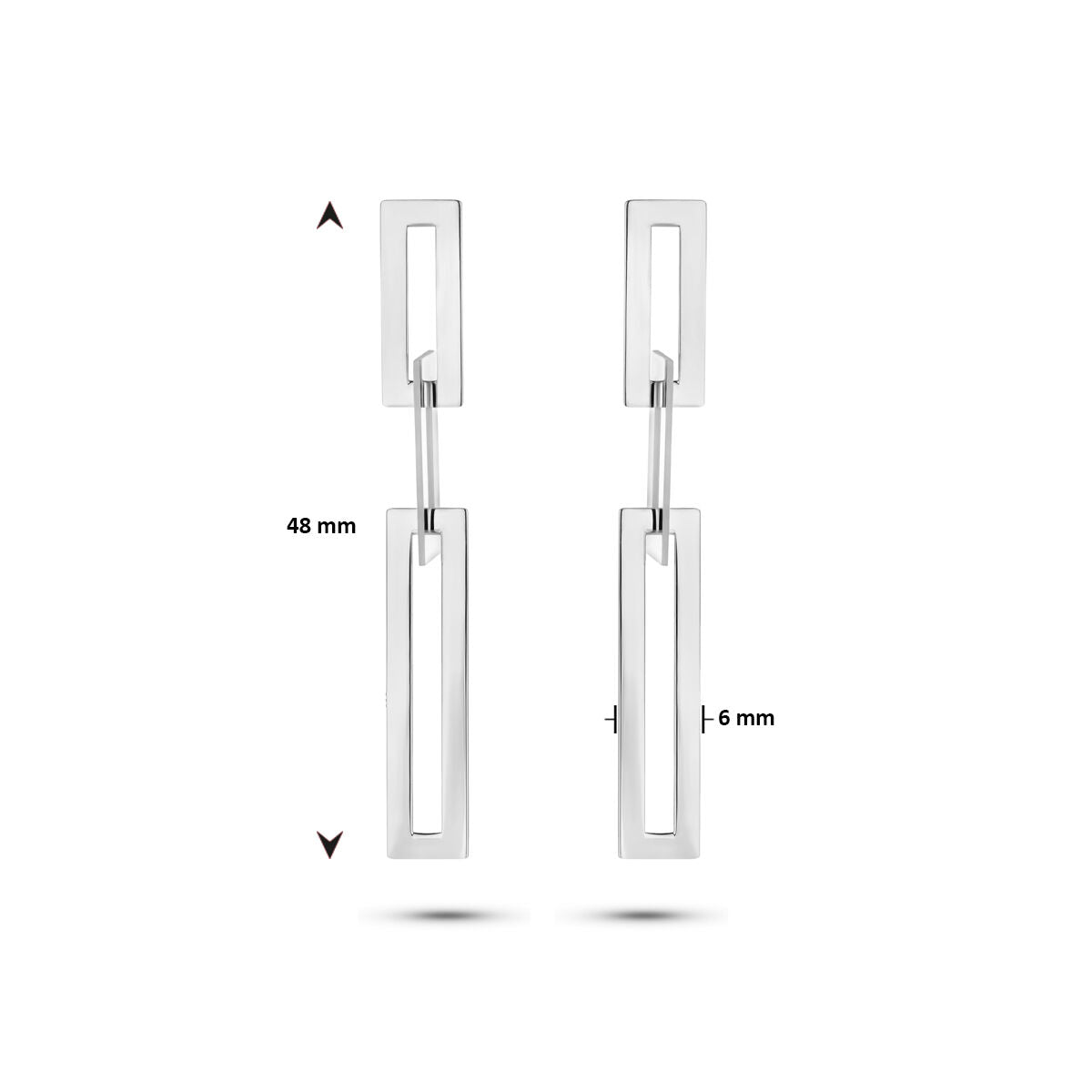 Rhodinierte 925er Silberohrringe mit Rechtecken und einer Gesamthöhe von 48 mm.