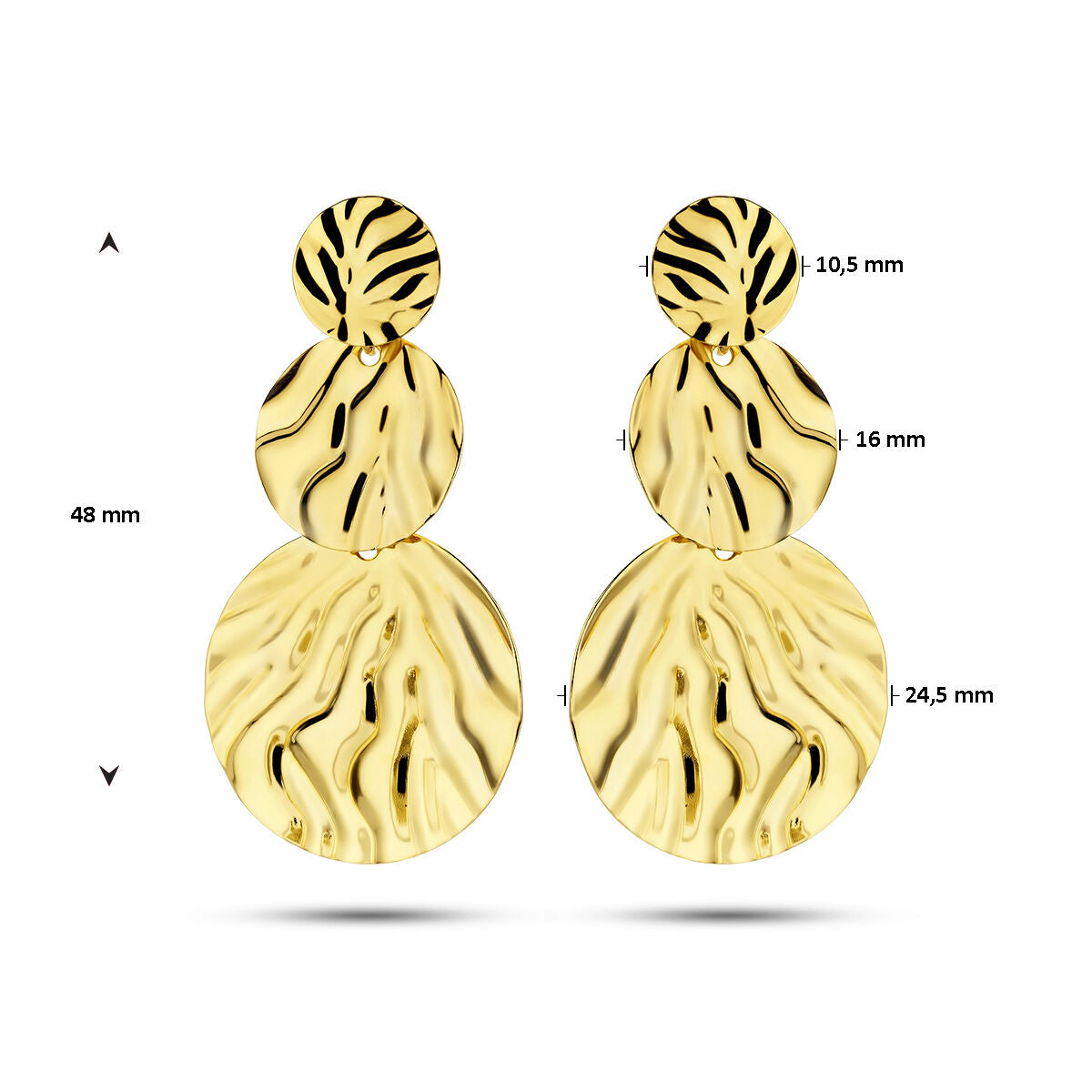 Ohrringe aus Gelbgold auf 925er Silber mit 3 Kreisen. Die Ohrringe haben eine Gesamthöhe von 48 mm. Keine Garantie auf die Beschichtung.
