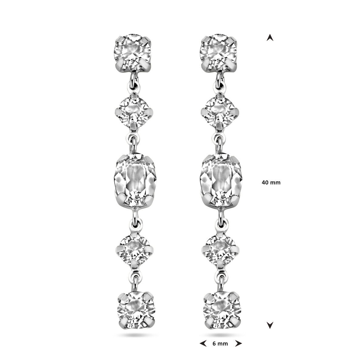Rhodinierte 925er Silberohrringe mit Swarovski-Steinen. Die Ohrringe haben eine Gesamthöhe von 40 mm.