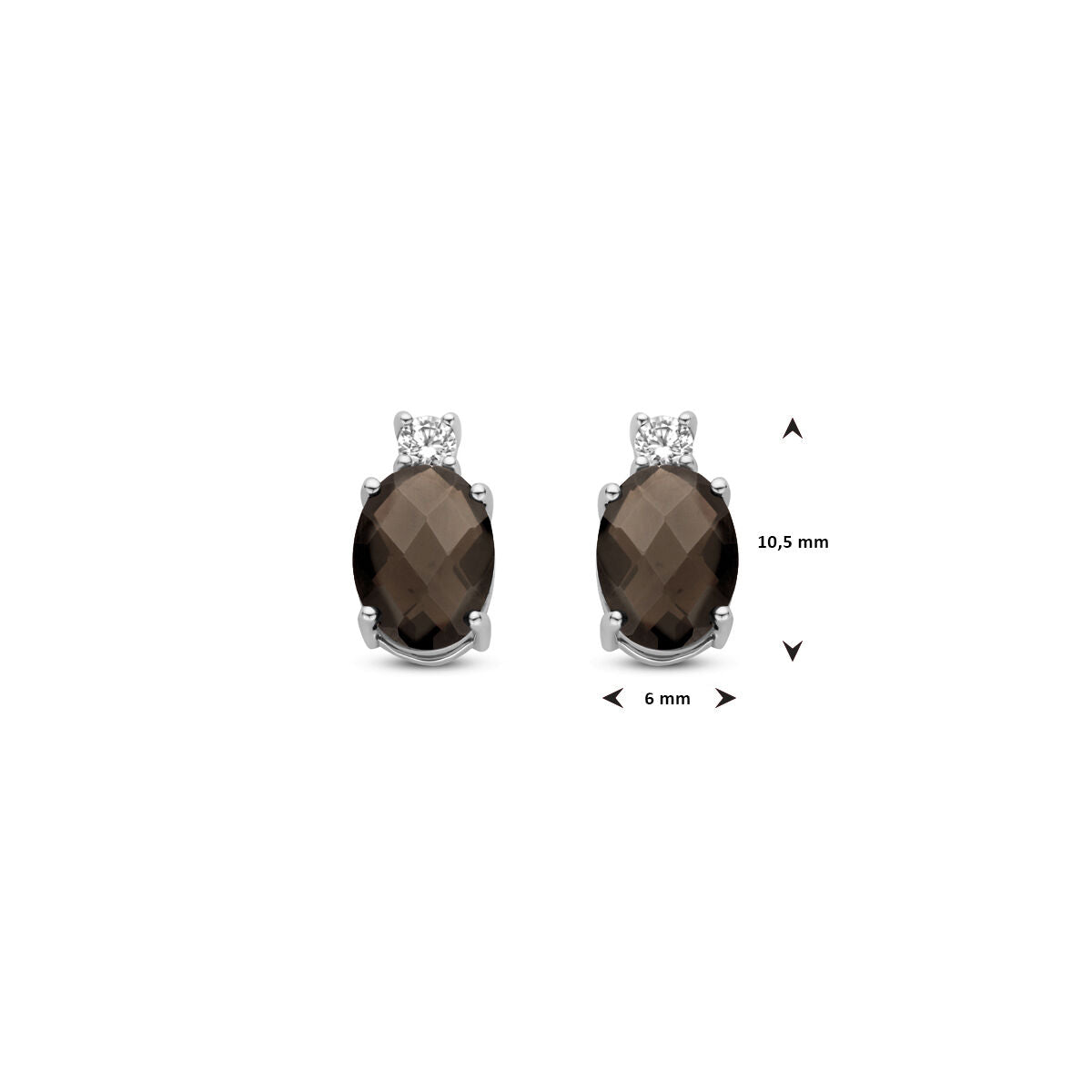 oorknoppen rookkwarts en zirkonia 10,5 mm zilver gerhodineerd