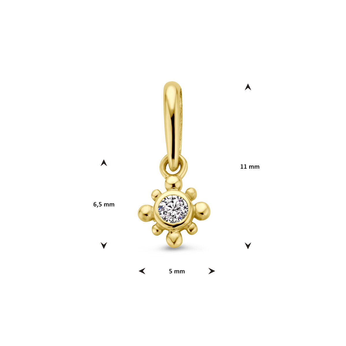 Anhänger aus 14-karätigem Gelbgold in Form einer Blume mit Zirkonia. Der Anhänger hat eine Gesamthöhe von 11mm.