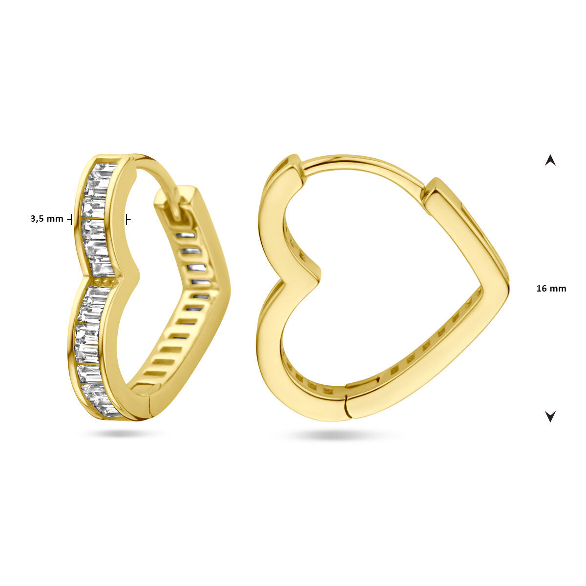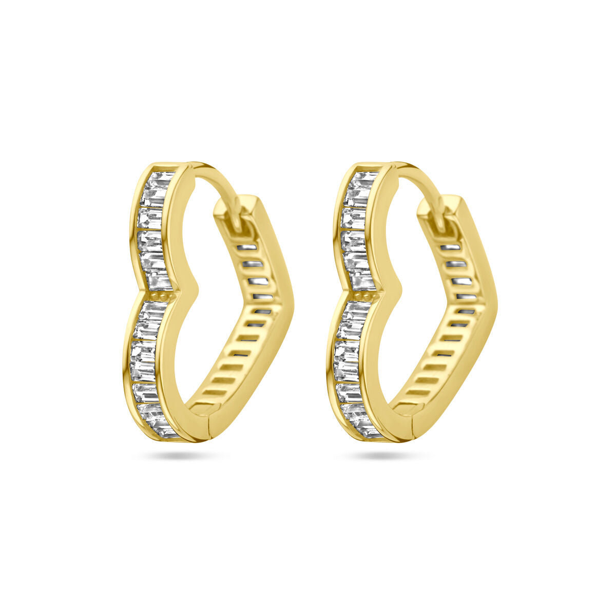 Ohrhänger aus Gelbgold auf 925er Silber mit Herz und Zirkonia. Die Ohrringe messen 16x3,5mm. Keine Garantie auf die Beschichtung.