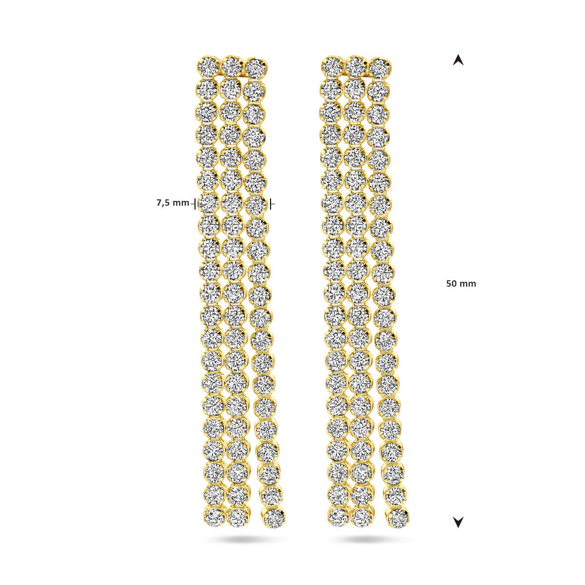 Ohrringe aus Gelbgold auf 925er Silber mit Zirkonia. Die Ohrringe haben eine Gesamthöhe von 50 mm. Keine Garantie auf die Beschichtung.