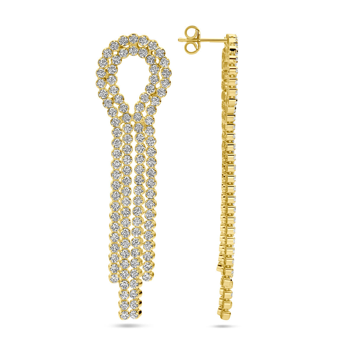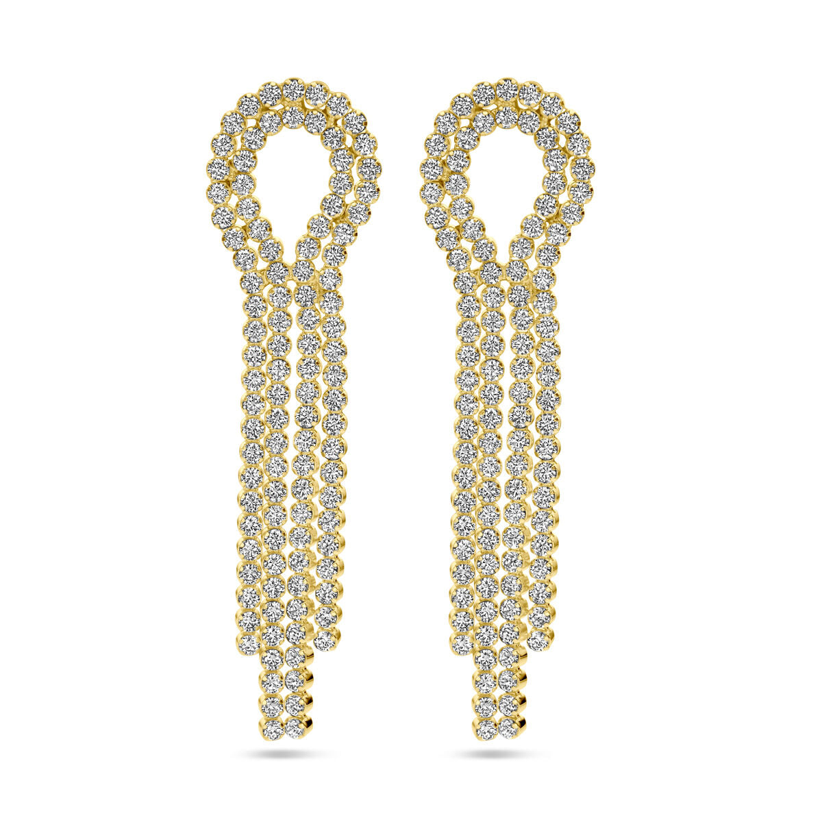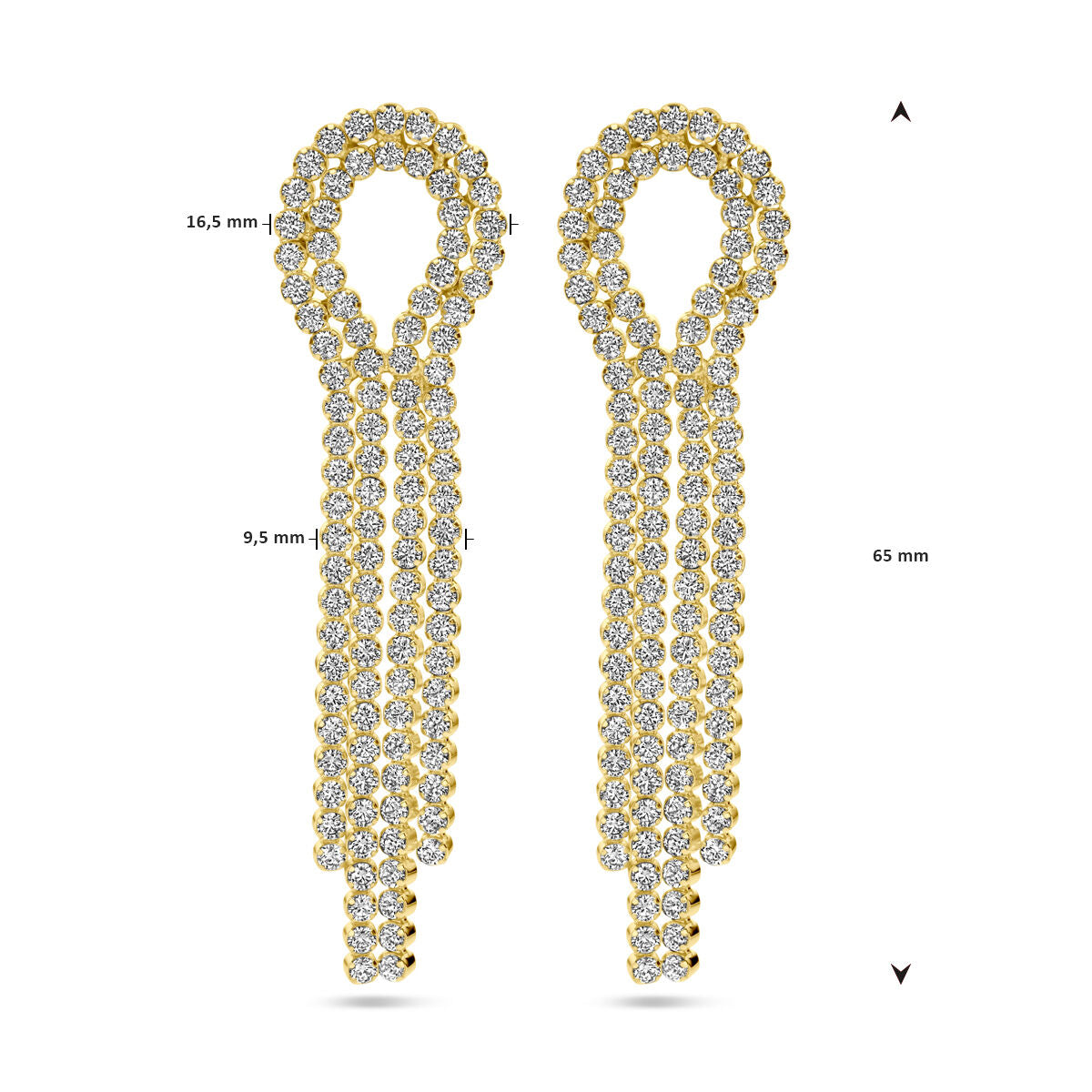 Ohrringe aus Gelbgold auf 925er Silber mit Zirkonia. Die Ohrringe haben eine Gesamthöhe von 65 mm. Keine Garantie auf die Beschichtung.