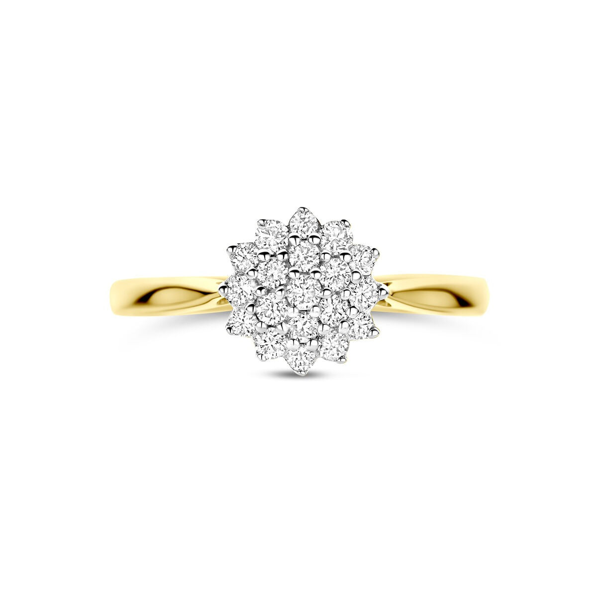 Deze stijlvolle 14k bicolor ring combineert de warme gloed van geelgoud met het moderne karakter van witgoud, wat resulteert in een eigentijds en verfijnd ontwerp. In het hart schittert een briljantgeslepen lab grown diamant van 0.33ct, gezet in een elegante chatonzetting die de steen optimaal tot zijn recht laat komen. De diamant heeft een transparante kleur en SI1-zuiverheid, wat zorgt voor een heldere en levendige schittering.