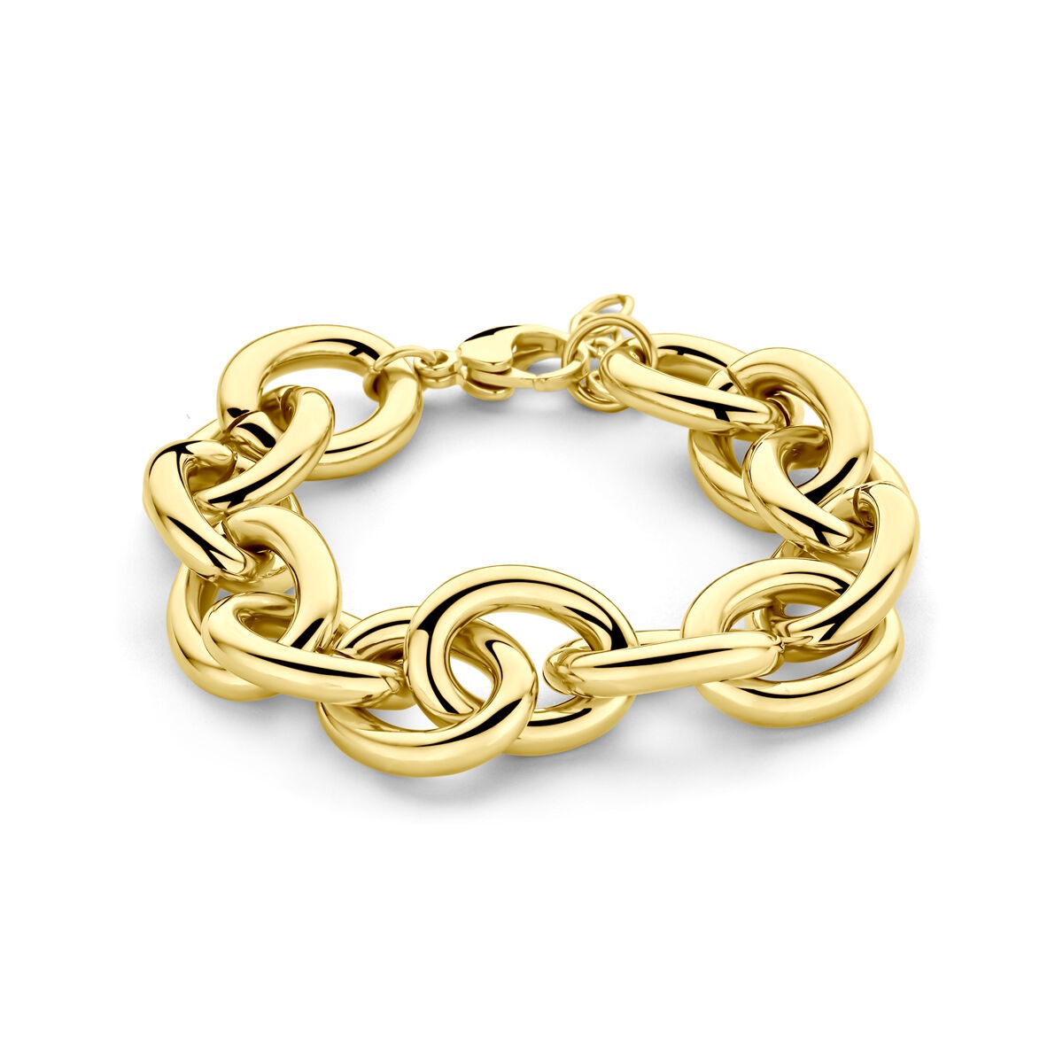Deze goudkleurige stalen armband is een verfijnd en veelzijdig sieraad dat moeiteloos past bij elke stijl. Het klassieke anker schakelontwerp krijgt een moderne uitstraling dankzij de warme goudkleurige ion plating, die niet alleen een luxe glans geeft, maar ook slijtvast en kleurvast is.