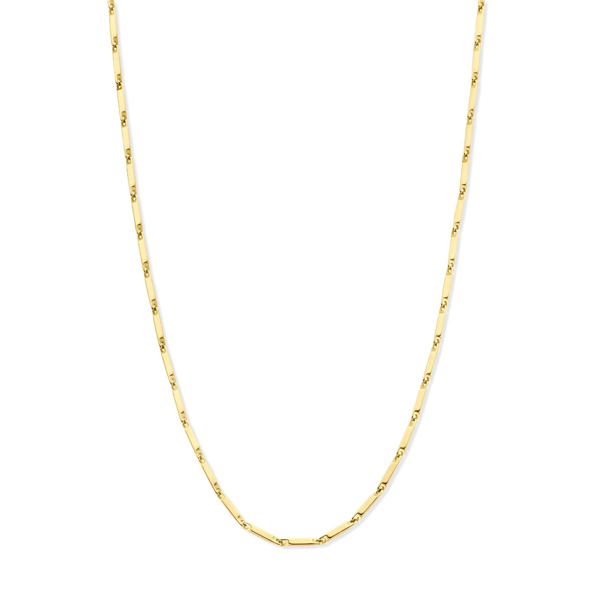 Dit goudkleurige stalen collier is een verfijnd en modern sieraad met een minimalistische uitstraling. De speelse schakels – bestaande uit bolletjes, staafjes en buisjes – geven het ontwerp een eigentijdse twist, terwijl de ion plating in warme goudtint zorgt voor een duurzame, krasvaste glans die langdurig mooi blijft.
