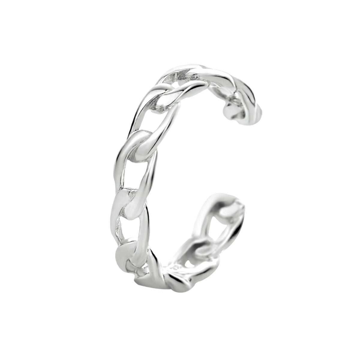 Gerhodineerd 925 zilveren earcuff uitgevoerd in schakelvorm. De earcuff heeft een diameter van 13mm en wordt per stuk verkocht.
