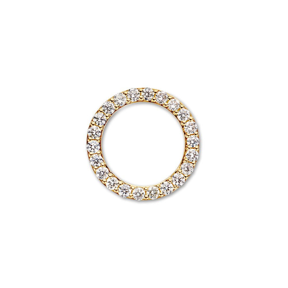 Ronde hanger die dankzij de verborgen oogjes over een collier heenvalt. De hanger is aan de voorzijde gezet met fonkelende diamanten.