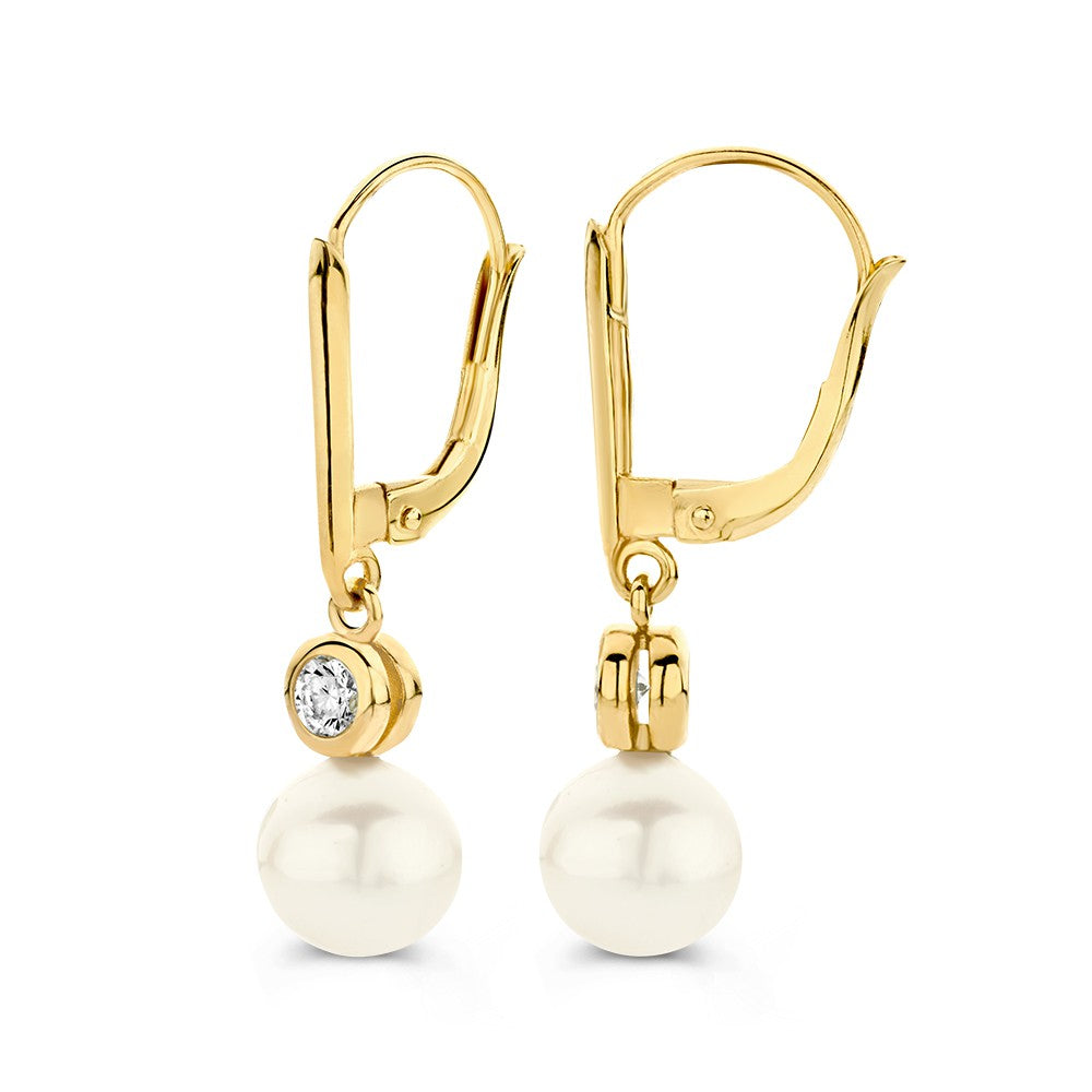 Geelgouden oorhaken met parels en zirkonia's – 14 karaat