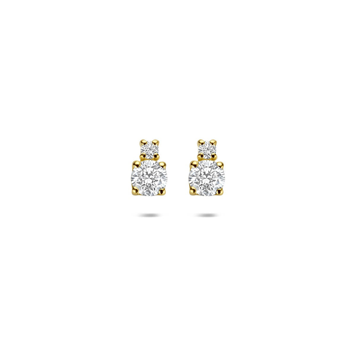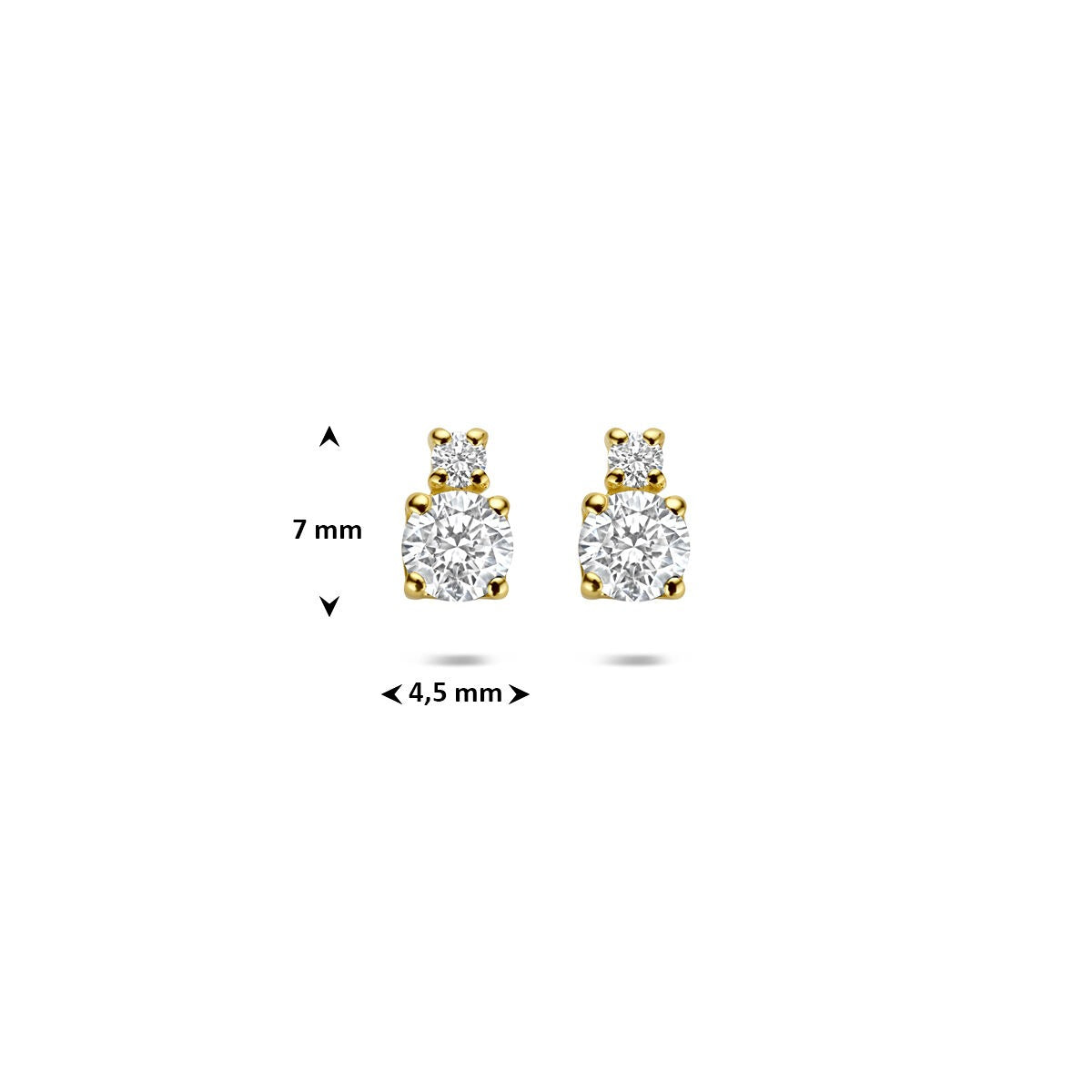 Deze 14k geelgouden oorknoppen zijn een krachtige ode aan elegantie en verfijning. Elke oorbel is gezet met een briljant geslepen lab grown diamant van 4,5 mm, samen goed voor een indrukwekkend totaalgewicht van 0.90ct. De transparante diamanten van hoge zuiverheid (VS2) schitteren in een klassieke 4-poots chatonzetting, waardoor ze alle ruimte krijgen om het licht op elegante wijze te weerkaatsen.