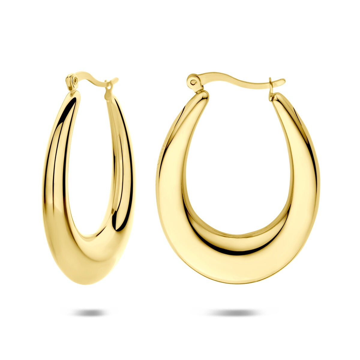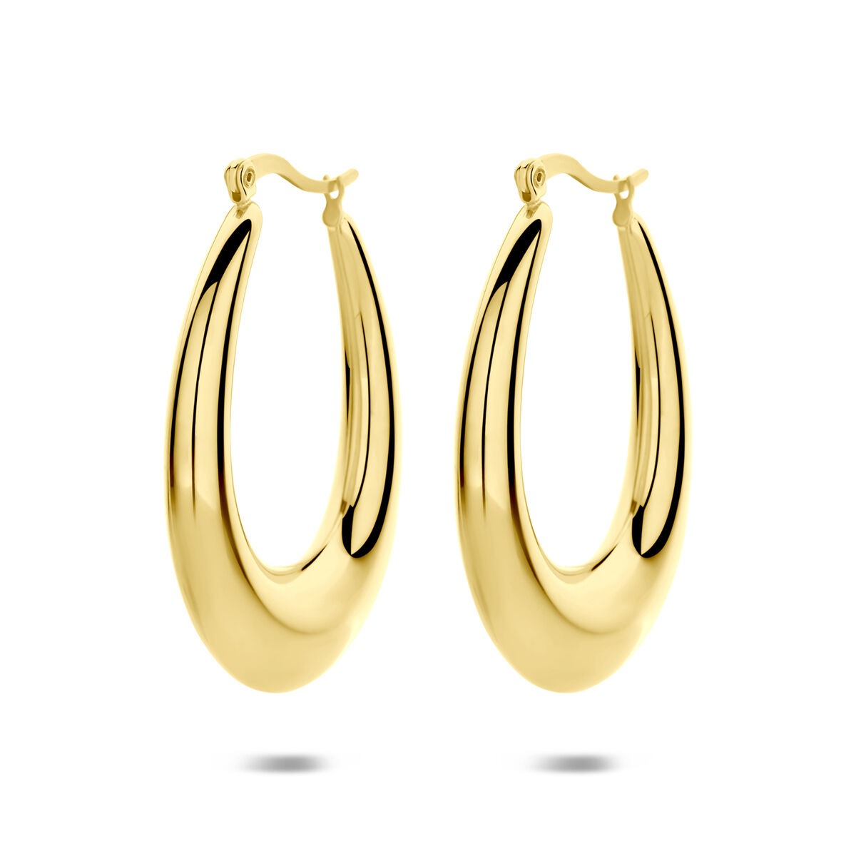 Deze goudkleurige stalen oorringen van 43 x 6 mm zijn ontworpen voor wie houdt van een krachtig, elegant statement. De royale afmeting en strakke vormgeving zorgen voor een moderne uitstraling, terwijl de warme ion plating in goudkleur het sieraad een luxe en duurzame afwerking geeft.