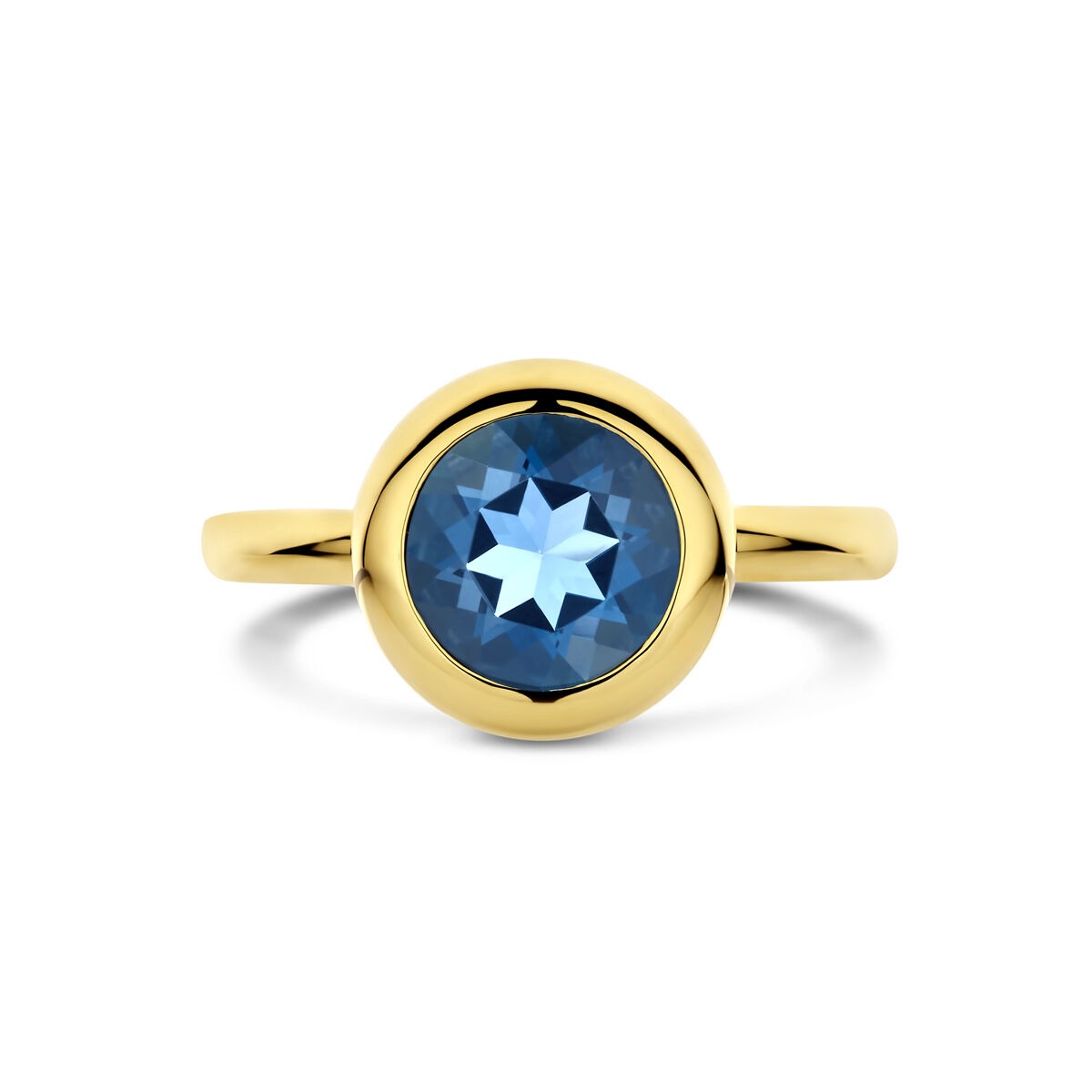 Gouden dames ring met London Blue topaas – 14k geelgoud