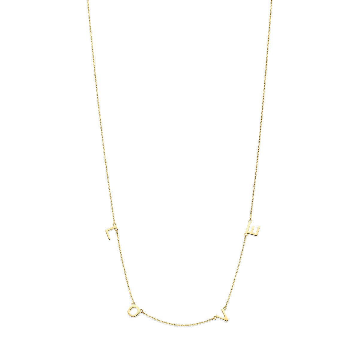 Halskette aus 14-karätigem Gelbgold mit den Buchstaben LOVE. Die Tragelängen betragen 38, 40 und 42 cm. Ausgestattet mit Federring.