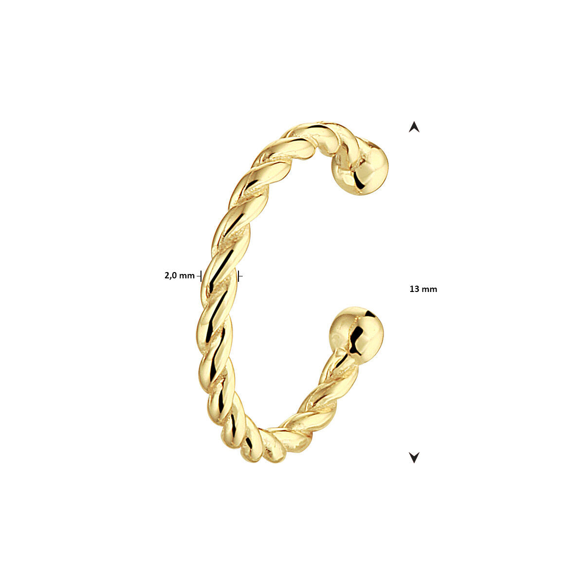 Gelbgold-Ohrring aus 925er Silber. Der Ear Cuff hat eine Größe von 13x2mm und wird pro Stück verkauft. Keine Garantie auf die Beschichtung.