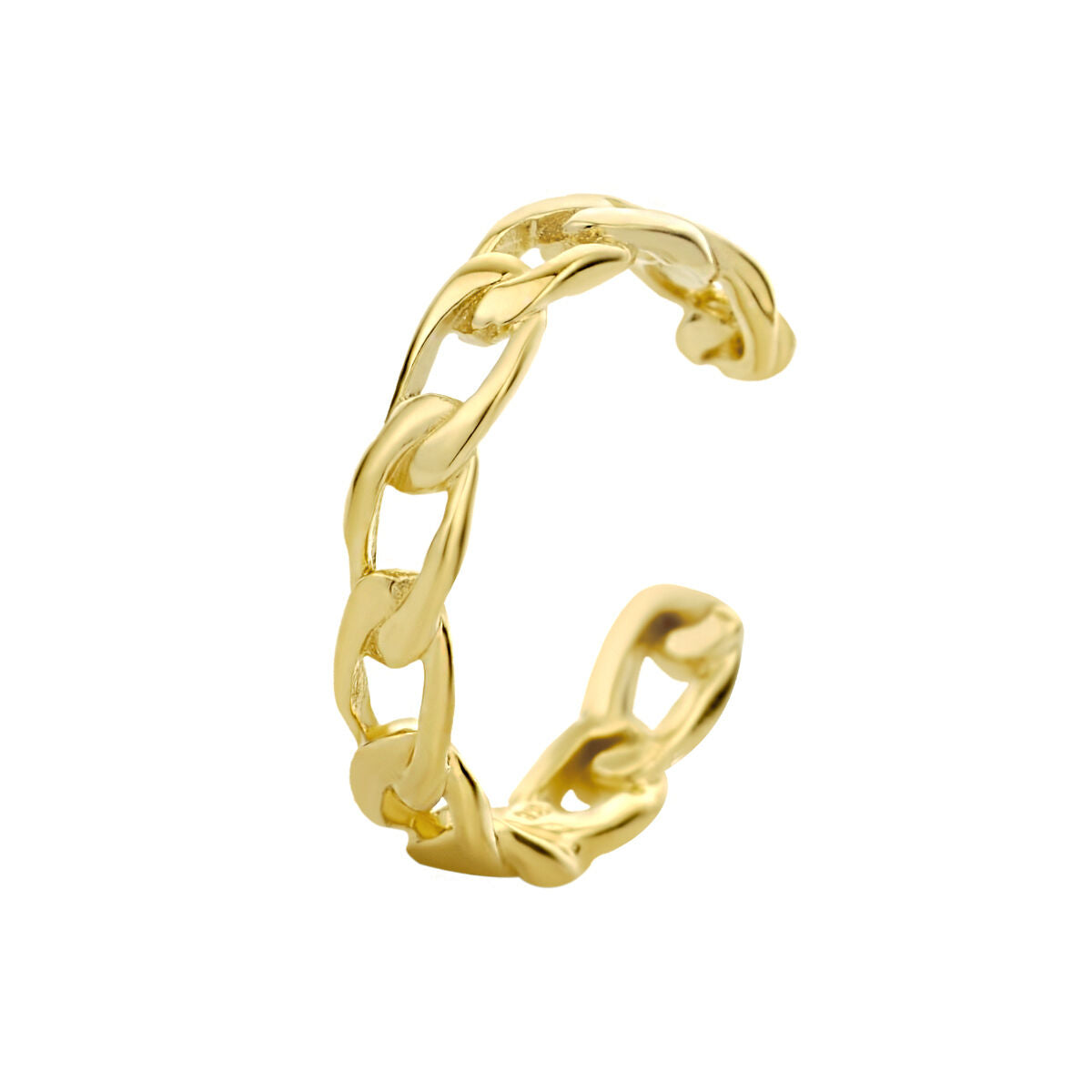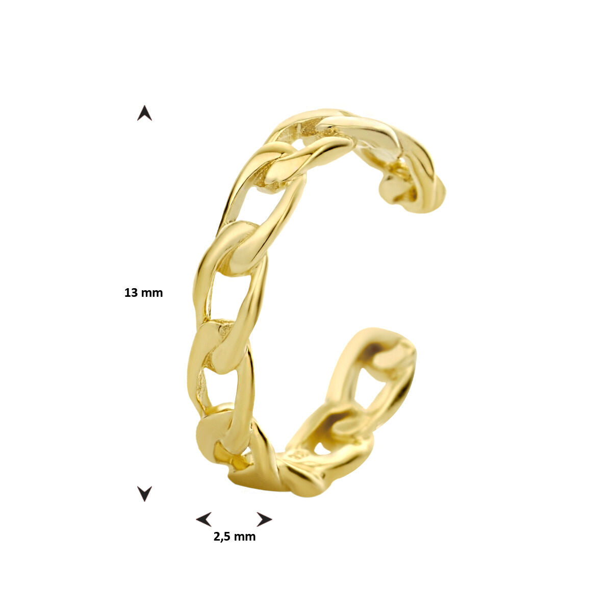 Ohrklemme aus Gelbgold auf 925er Silber in Gliederform. Der Ear Cuff hat einen Durchmesser von 13 mm und wird pro Stück verkauft. Keine Garantie auf die Beschichtung.
