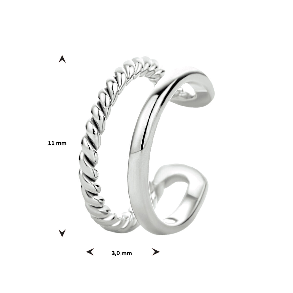 Ohrklemme aus rhodiniertem 925er Silber. Der Ear Cuff hat eine Größe von 11x3mm und wird pro Stück verkauft.