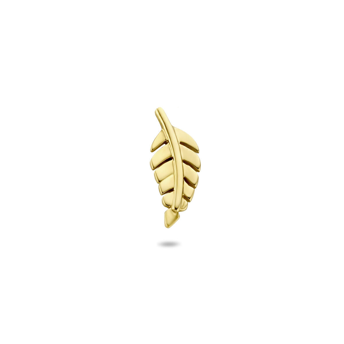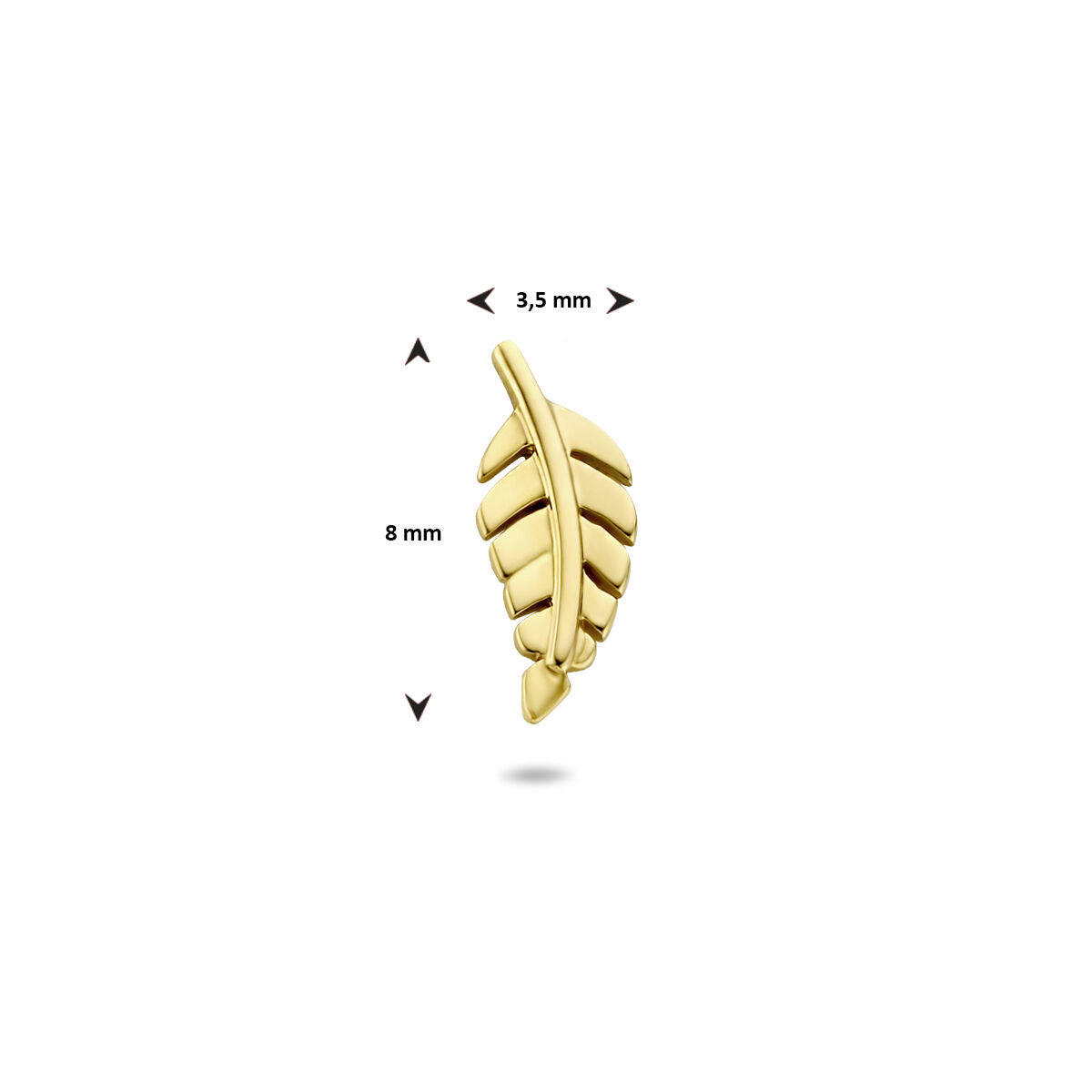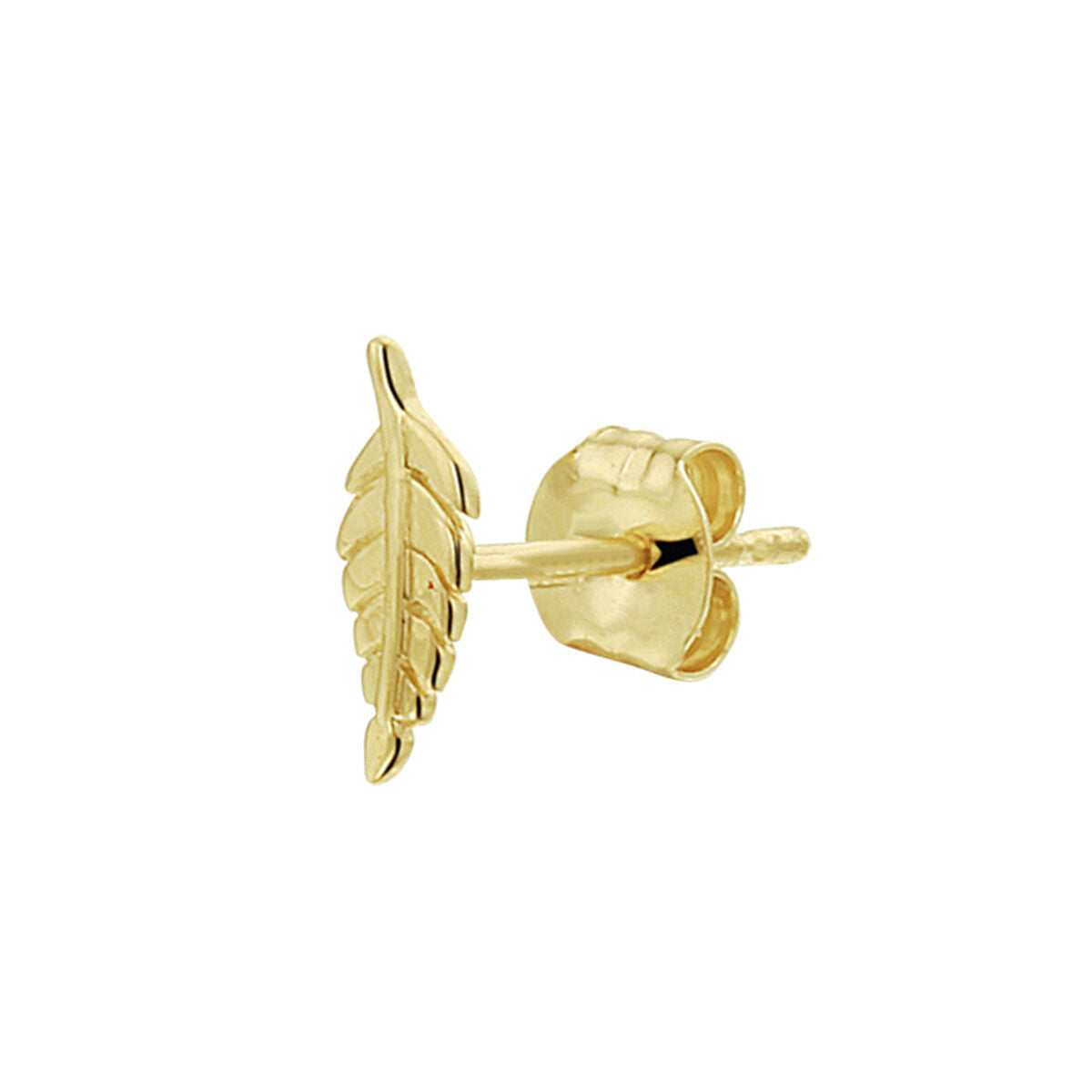 Ohrstecker aus 14-karätigem Gelbgold in Form einer Feder mit den Abmessungen 8 x 3,5 mm. Ausgestattet mit einem stabilen Poussette-Verschluss. Diese Ohrringe werden pro Stück statt pro Paar verkauft.