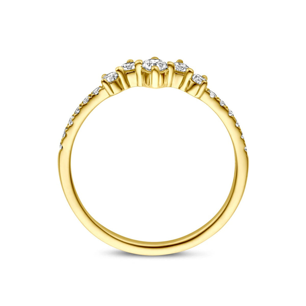 14k Geelgouden dames ring met zirkonia in entouragezetting