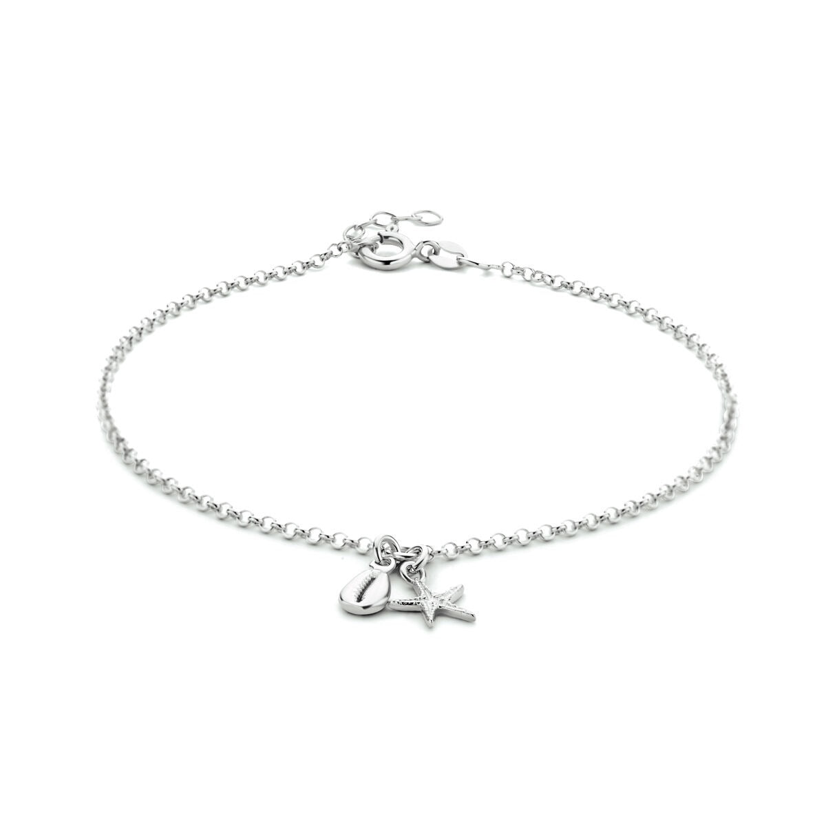 Gerhodineerd Zilveren Enkelbandje met Ster en Schelp – 24-26 cm