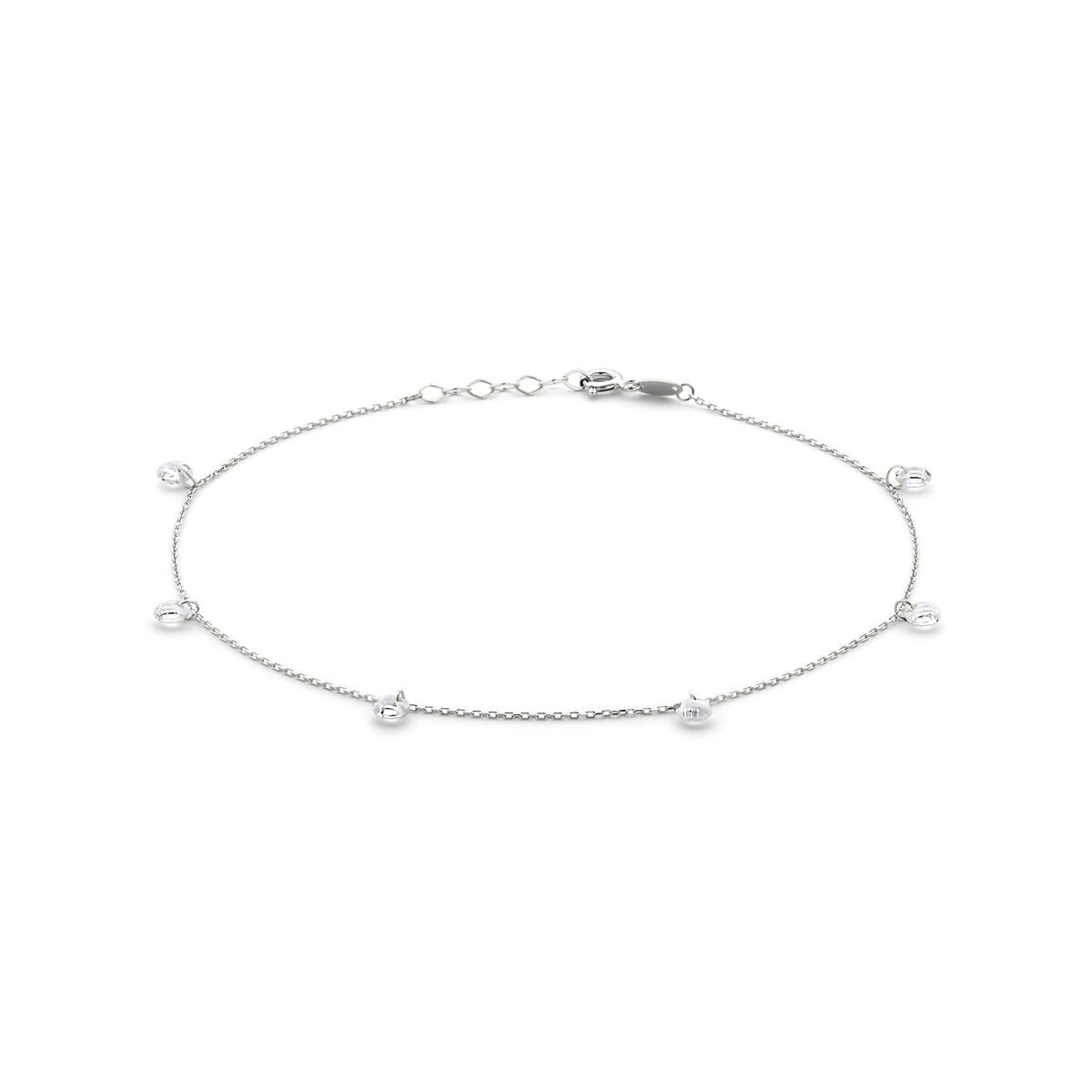 Dit elegante enkelbandje is vervaardigd van 925 sterling zilver en afgewerkt met een hoogwaardige rodiumlaag, die zorgt voor een heldere, zilverwitte glans en extra bescherming tegen verkleuring. Het ontwerp wordt verfijnd geaccentueerd door een transparante zirkonia met een briljante slijpvorm, die subtiel fonkelt bij iedere beweging en het enkelbandje een luxueuze uitstraling geeft.