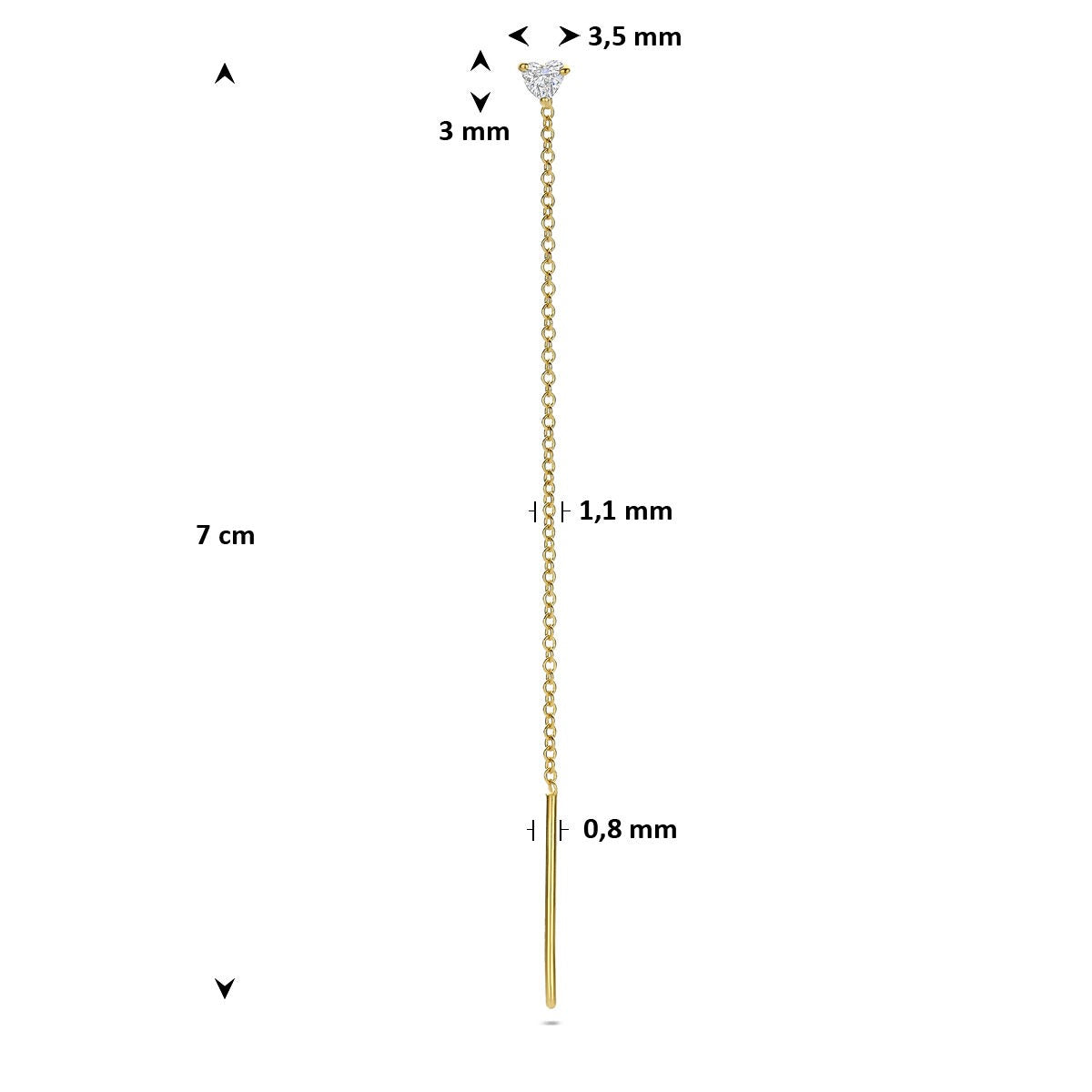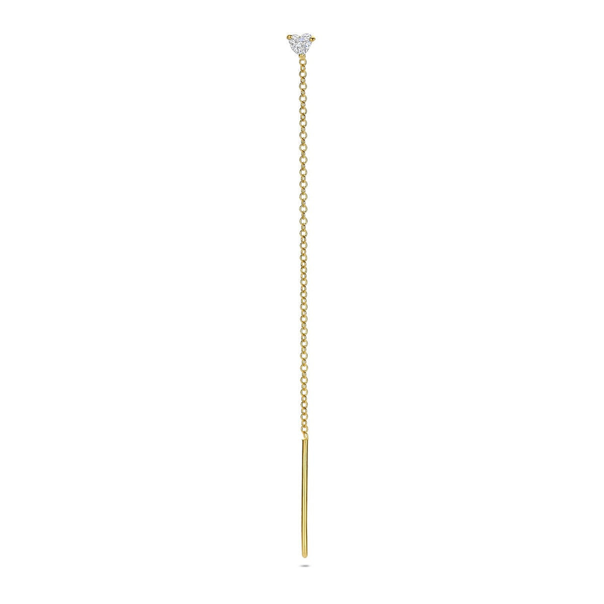 14k Geelgouden doortrekoorbel met hartvormige diamant