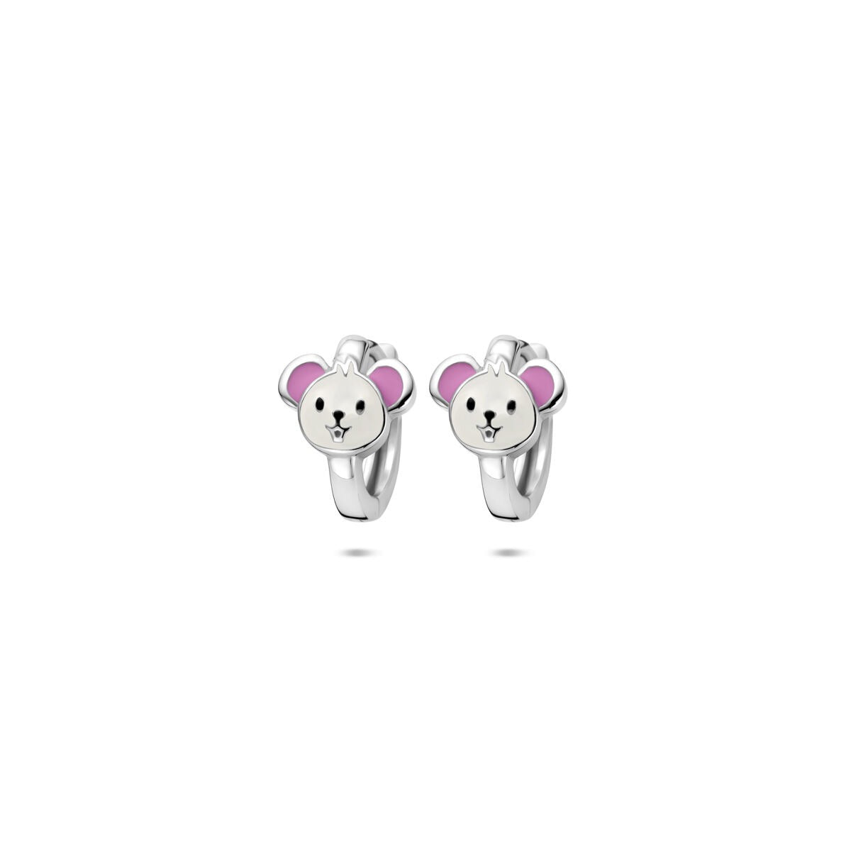 Zilveren kinder klapoorringen met emaille muis – 10 x 8 mm