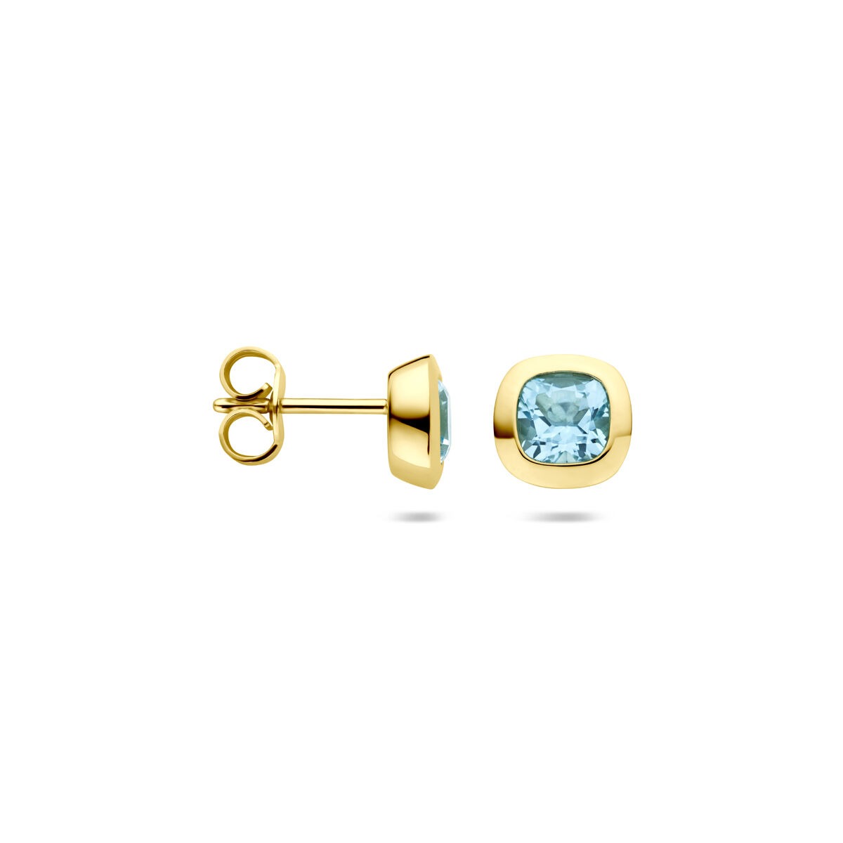 Deze gouden oorknoppen met edelsteen zijn een verfijnde toevoeging aan elke sieradencollectie. Vervaardigd uit 14 karaat geelgoud en bezet met briljant geslepen sky blue topaas, stralen ze een frisse, elegante charme uit. De subtiele hemelsblauwe kleur van de topaas wordt versterkt door de warme glans van het goud, wat zorgt voor een harmonieus en luxueus geheel.