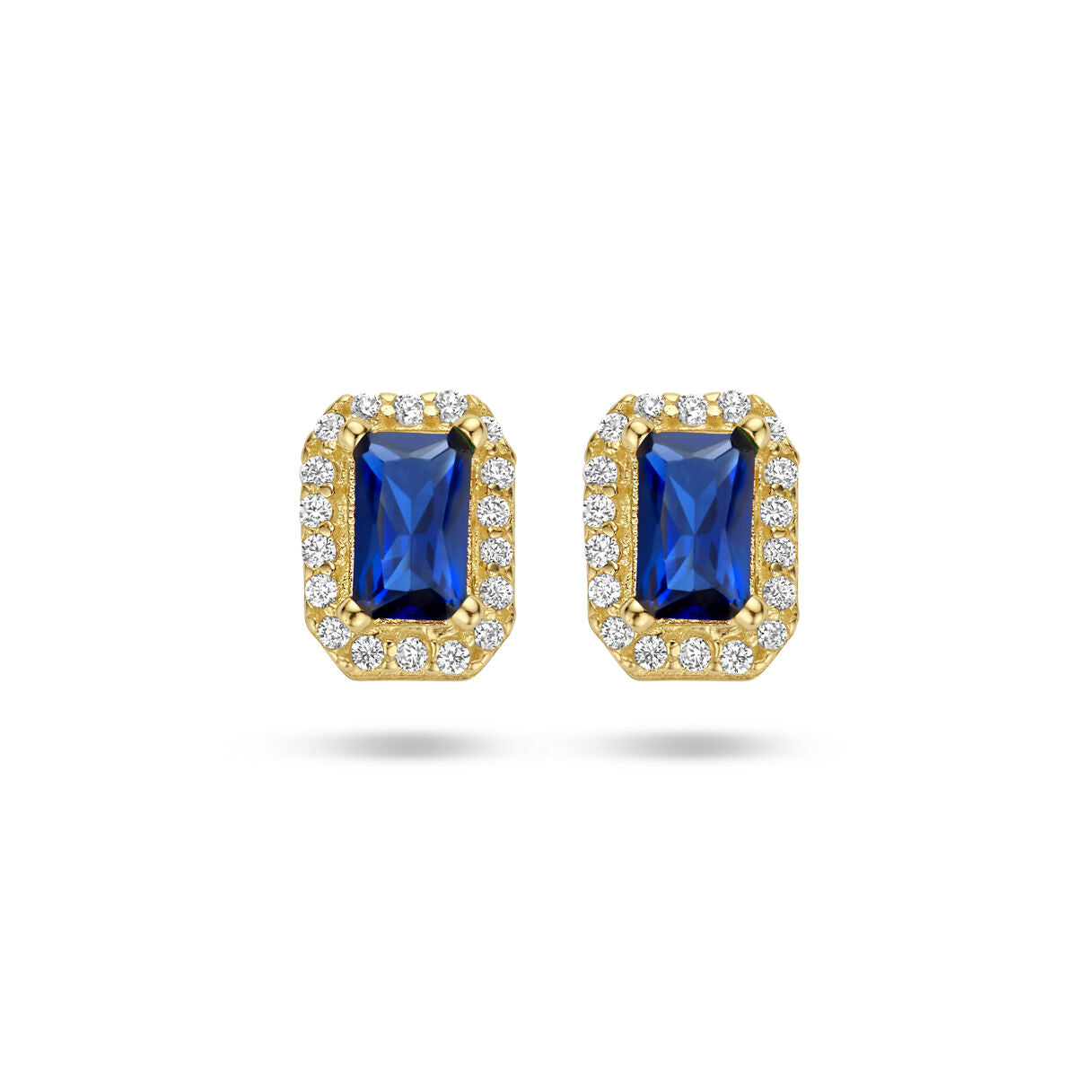 ear studs synth. sapphire and zirconia halo 14K yellow gold