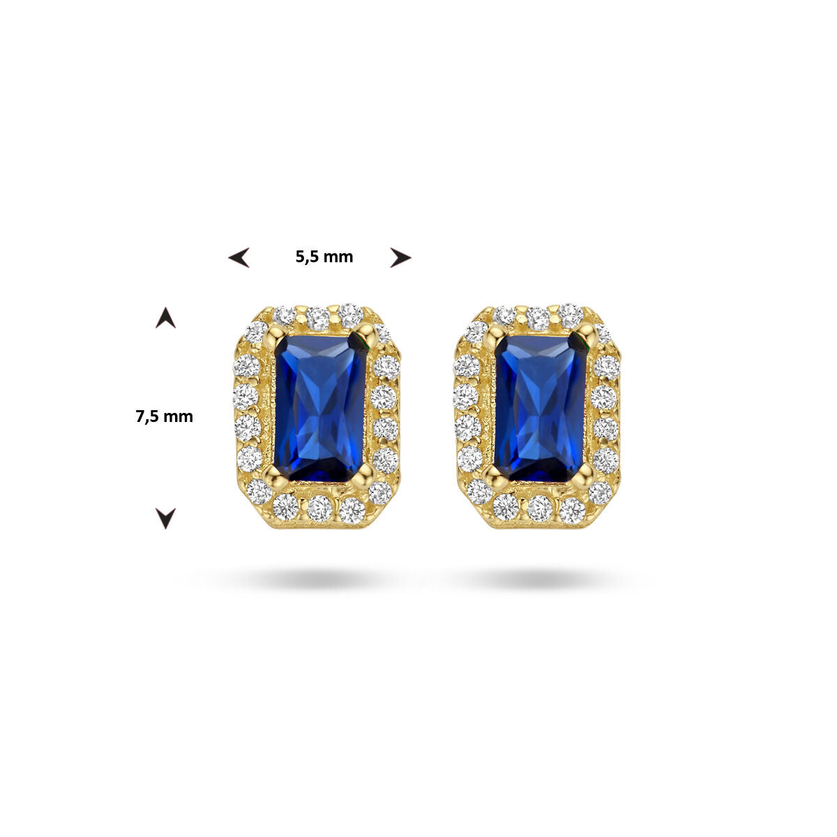 14k yellow gold stud earrings made with synthetic sapphire. The ear studs have a size of 7.5x5.5mm.