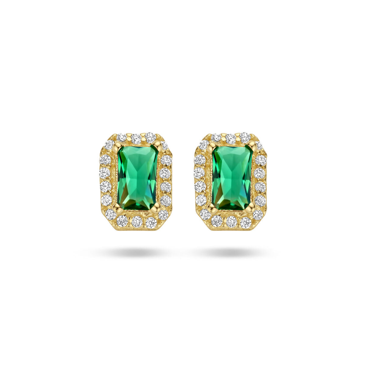 14k yellow gold stud earrings with beautiful green zirconia. The ear studs measure 7.5x5.5mm.