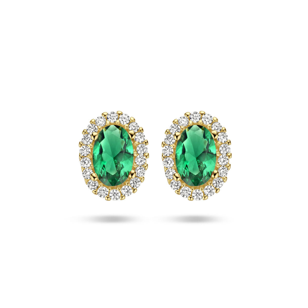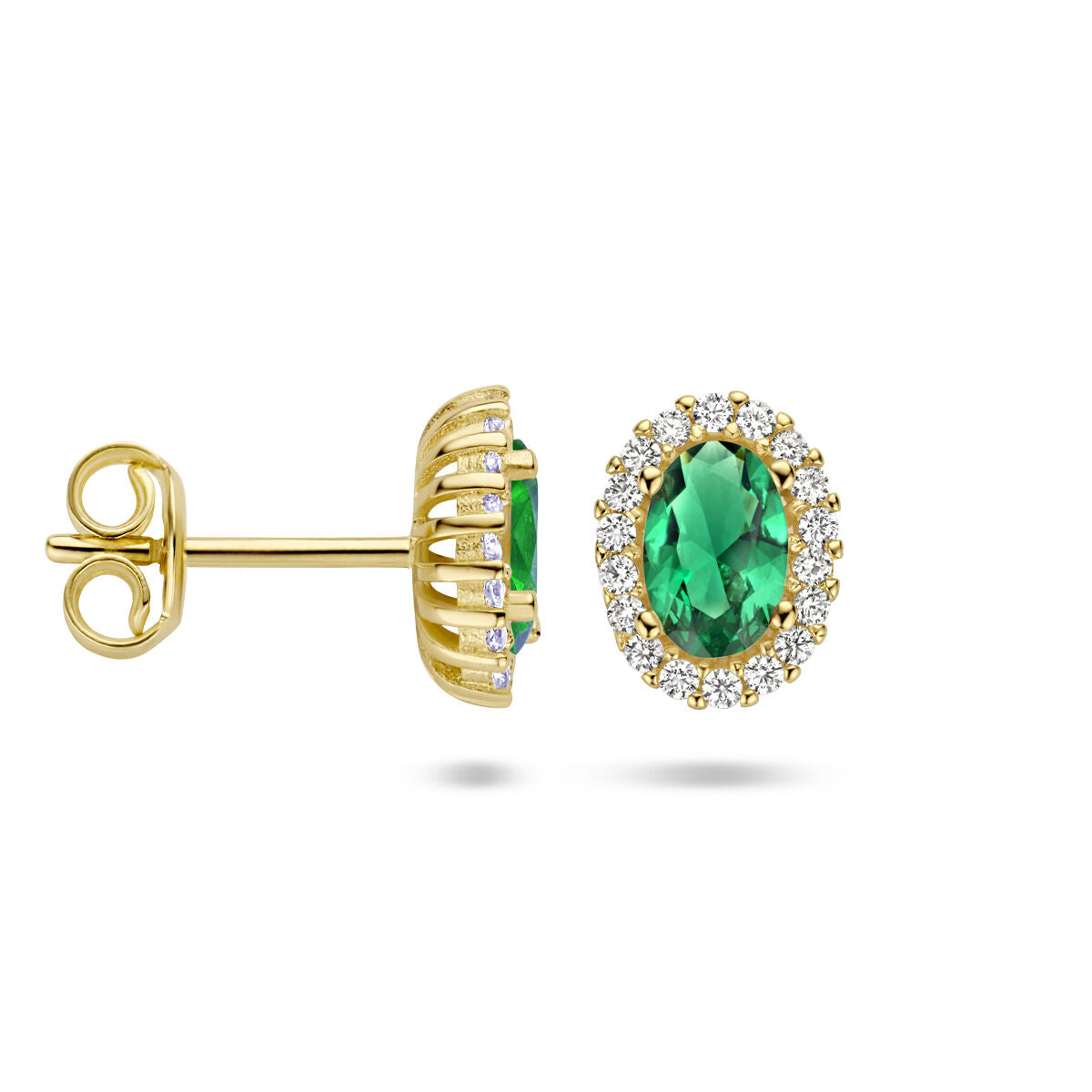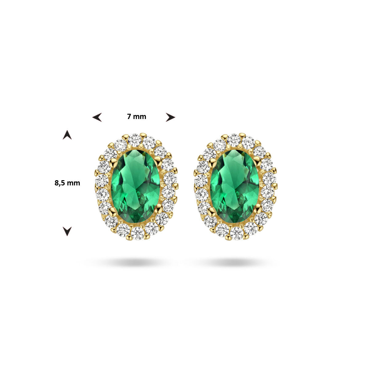 14k yellow gold stud earrings with beautiful green zirconia. The ear studs measure 8.5x7mm.