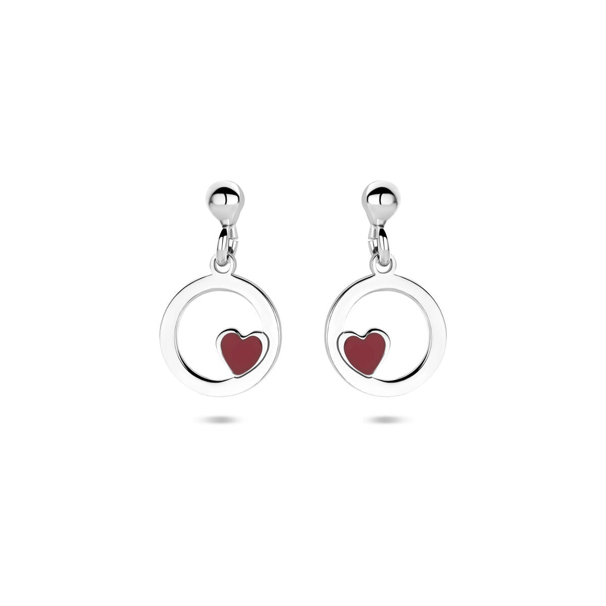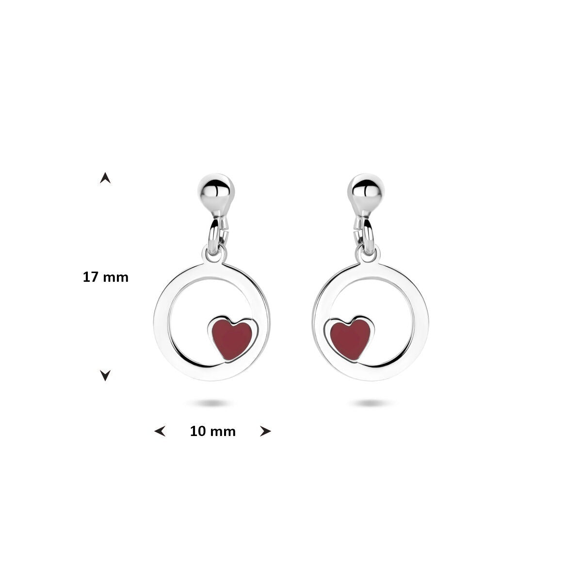 Zilveren kinder oorhangers hartje gerhodineerd met emaille 17 mm