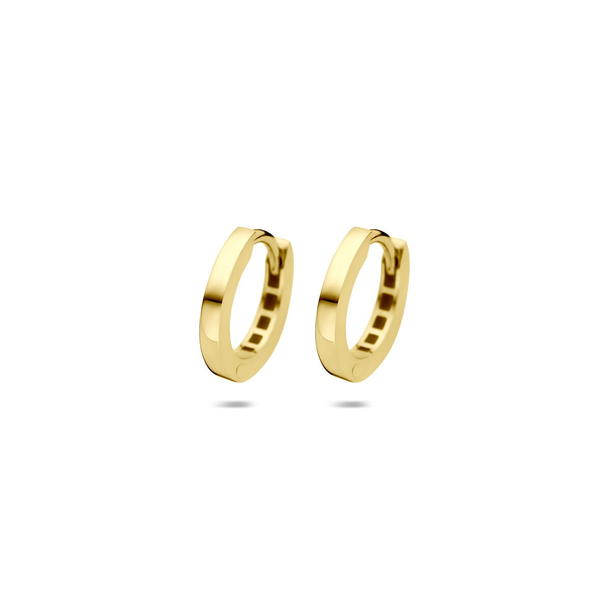 De warme goudkleurige glans geeft deze oorringen een klassieke charme, terwijl de scharnier­sluiting zorgt voor optimaal draagcomfort en een veilige pasvorm. Perfect om solo te dragen voor een ingetogen look, of als basis in een gelaagde earparty.