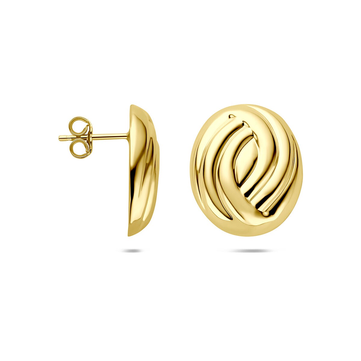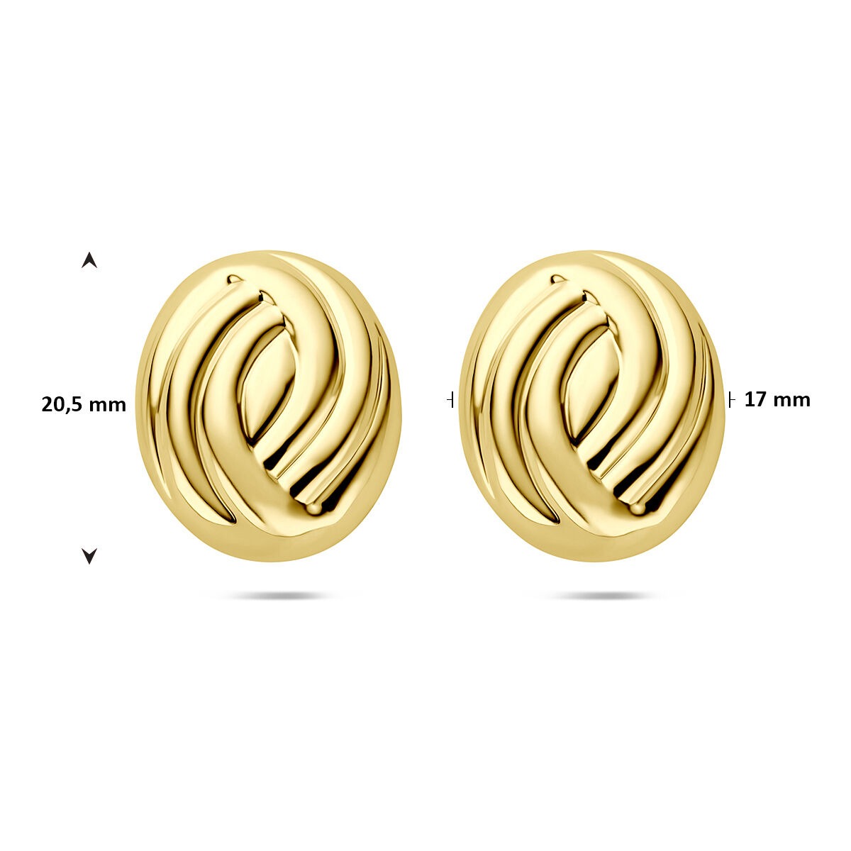 Deze verguld geel op 925 zilveren oorknoppen maken een stijlvol statement met hun opvallende formaat van 20,5 x 17 mm. Het vloeiende, moderne ontwerp straalt kracht en elegantie uit, terwijl de goudkleurige afwerking een warme, luxe uitstraling geeft. Gemaakt van stevig sterling zilver en verguld met een geelgouden toplaag, zijn deze oorknoppen licht van gewicht en comfortabel in het dragen.