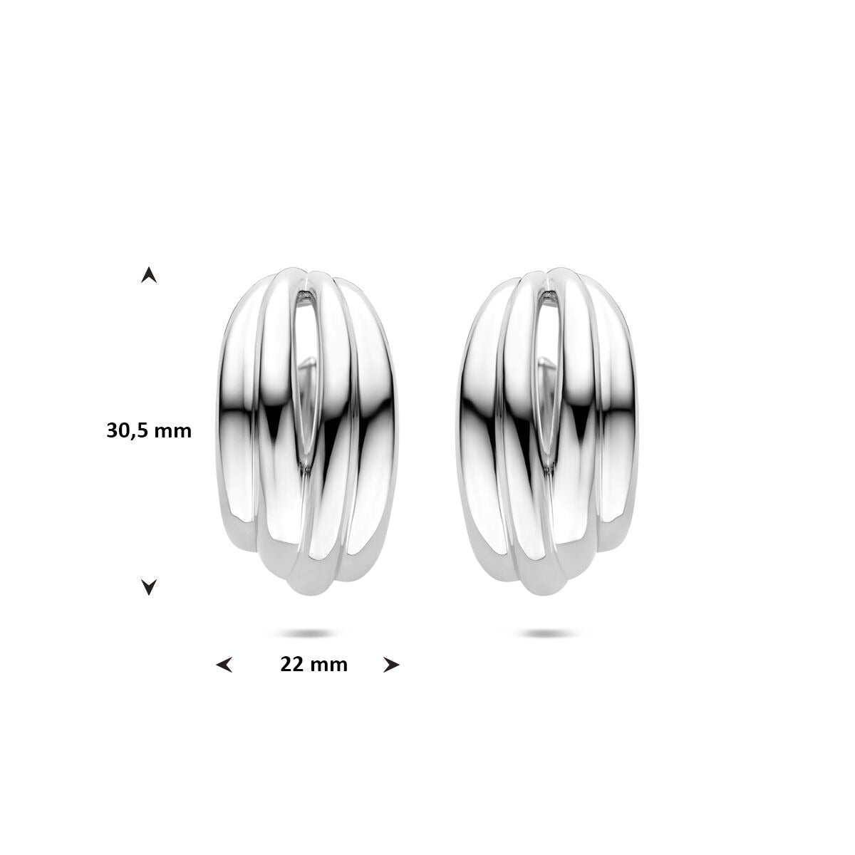 Deze gerhodineerd 925 zilveren oorringen stralen een moderne elegantie uit dankzij hun royale formaat en verfijnde afwerking. Met een afmeting van 30,5 x 22 mm hebben de oorbellen een ovale vorm die mooi aansluit op het oor en zorgt voor een verfijnd silhouet. De rhodiumlaag geeft het zilver een extra glans en beschermt tegen verkleuring, waardoor het sieraad langdurig zijn helder zilveren uitstraling behoudt.