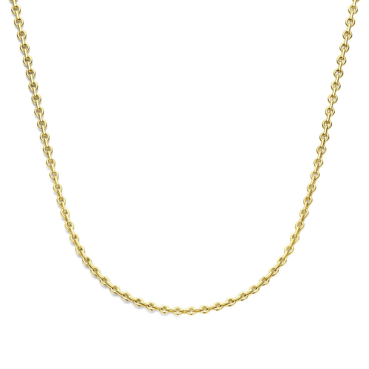 Deze stijlvolle gouden ketting is vervaardigd uit 14k geelgoud met een kern van 925 zilver – een unieke combinatie die bekendstaat als Silgold. Dankzij deze innovatieve samenstelling straalt het collier luxe uit, terwijl het tegelijkertijd licht en betaalbaar blijft. De warme glans van het goud komt prachtig tot zijn recht op de huid en maakt dit sieraad tot een tijdloze aanvulling op elke sieradencollectie.