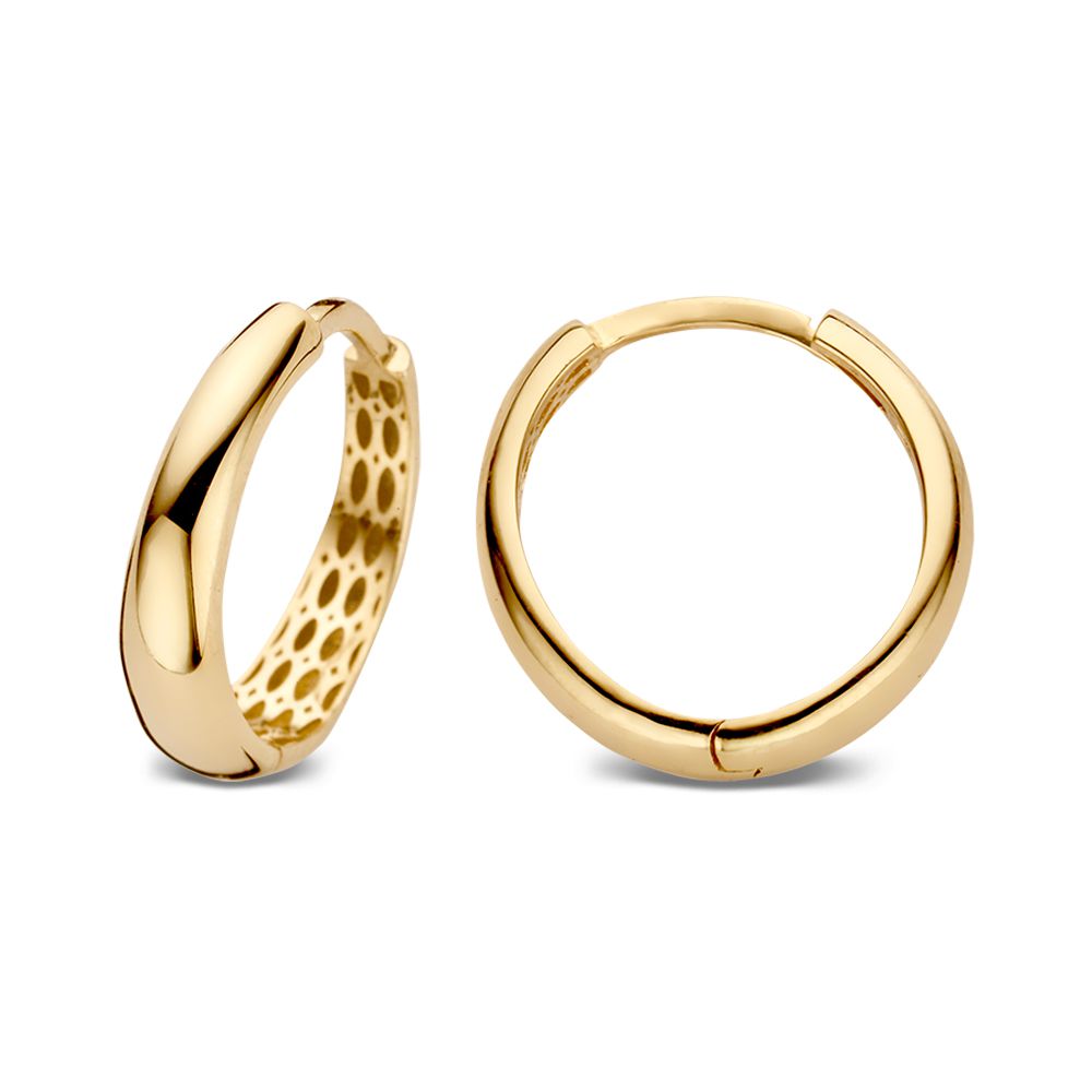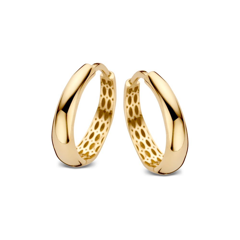 Geelgouden oorringen die taps toelopen.