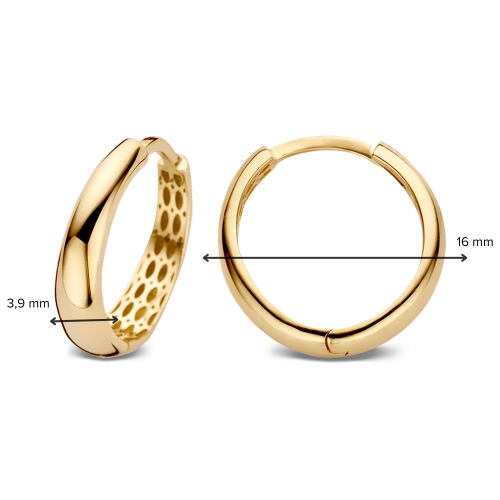 Deze geelgouden oorringen stralen een verfijnde eenvoud uit die elke look moeiteloos verheft. Het taps toelopende ontwerp, dat van breed naar smal loopt, geeft de oorringen een subtiele, dynamische vorm die zowel modern als tijdloos aanvoelt. Het 14 karaat geelgoud voegt een rijke, warme glans toe, waardoor de oorbellen bij elke beweging een verfijnde sprankeling geven.