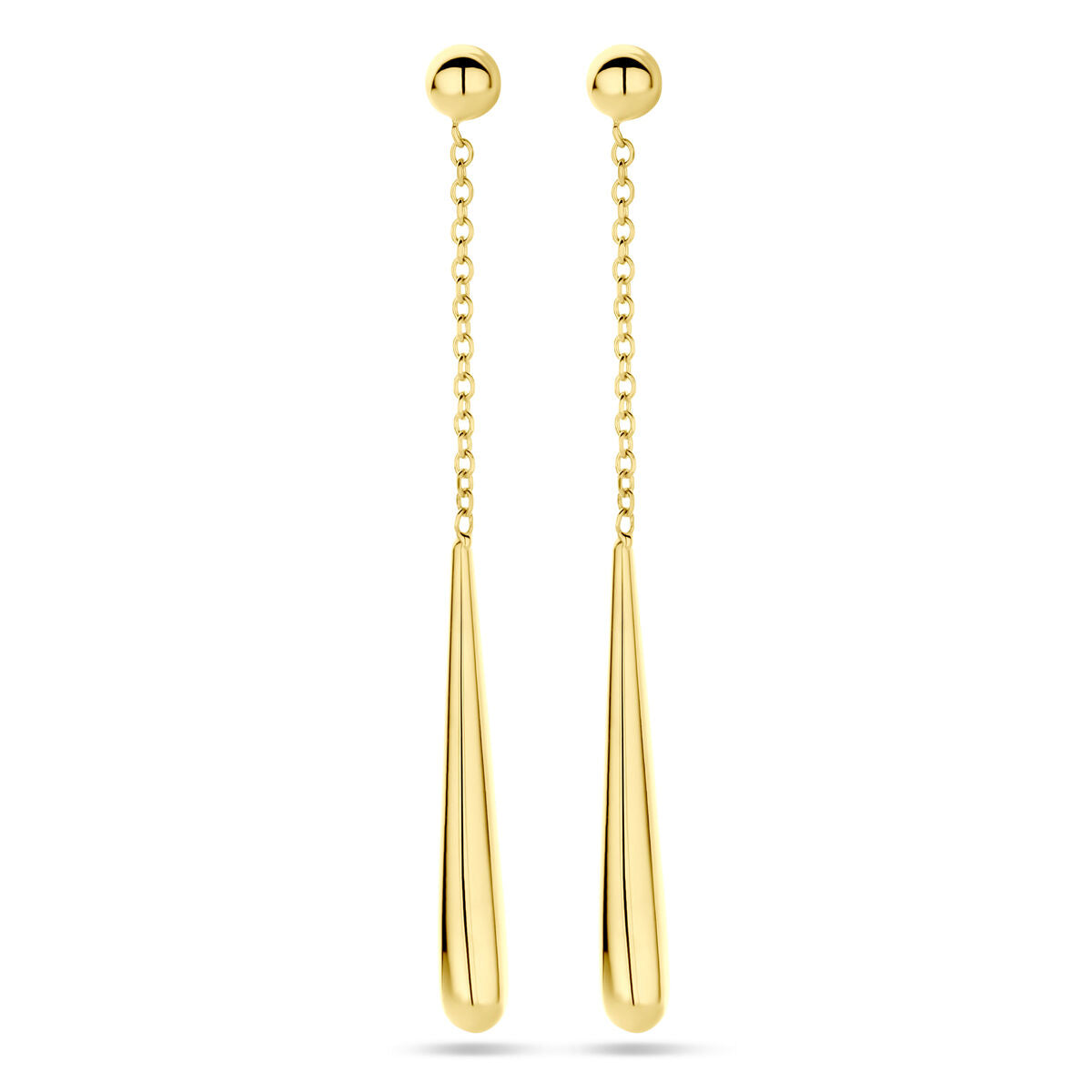 18k Geelgouden oorhangers uitgevoerd met een druppel. De oorhangers hebben een afmeting van 25x3.8mm.