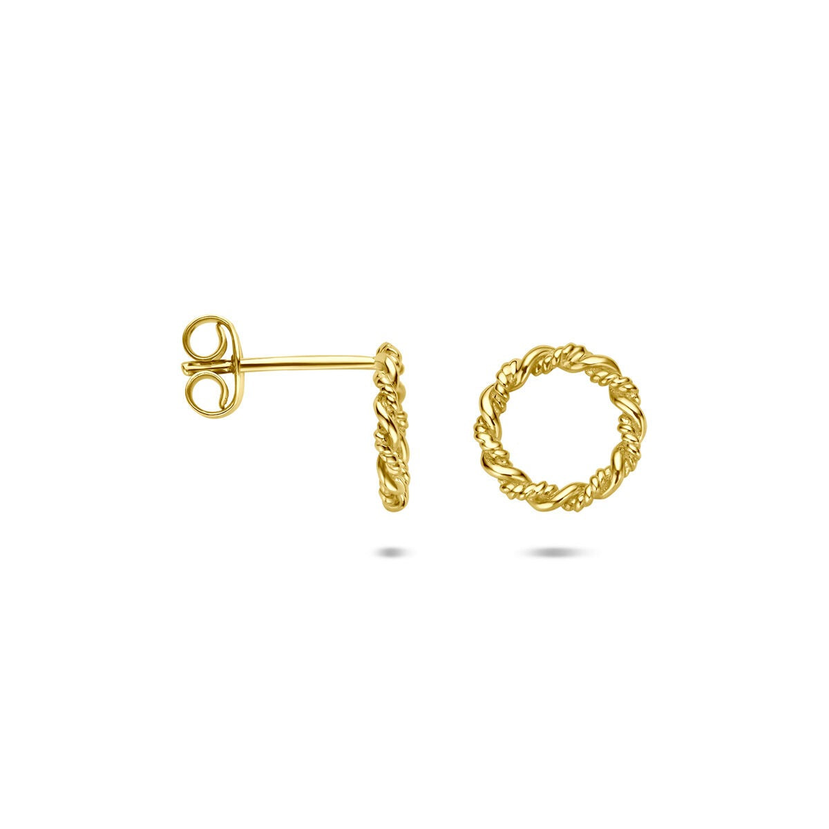 Deze 14k geelgouden oorknoppen zijn een verfijnde interpretatie van minimalistische luxe. Het gedraaide rondje, met een diameter van 9,5 mm, zorgt voor een speels en elegant effect waarbij het licht op subtiele wijze wordt gevangen. Het warme geelgoud geeft de oorstekers een klassieke uitstraling, terwijl het gedraaide ontwerp net dat beetje extra karakter toevoegt.