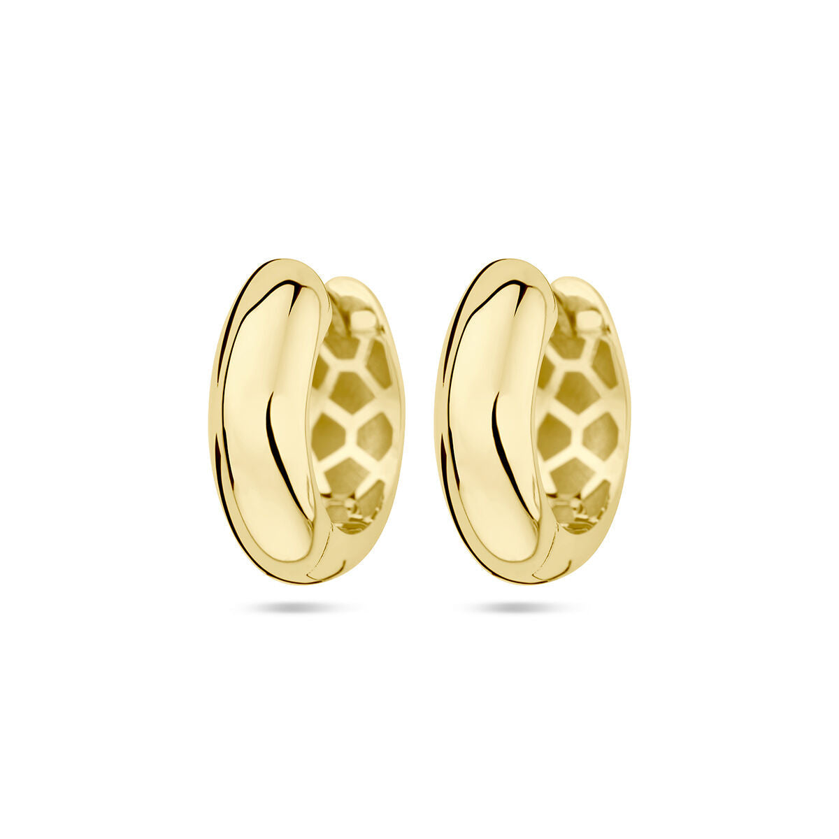 14k Yellow Gold Drop Earrings. The earrings have a diameter of 15.5mm.