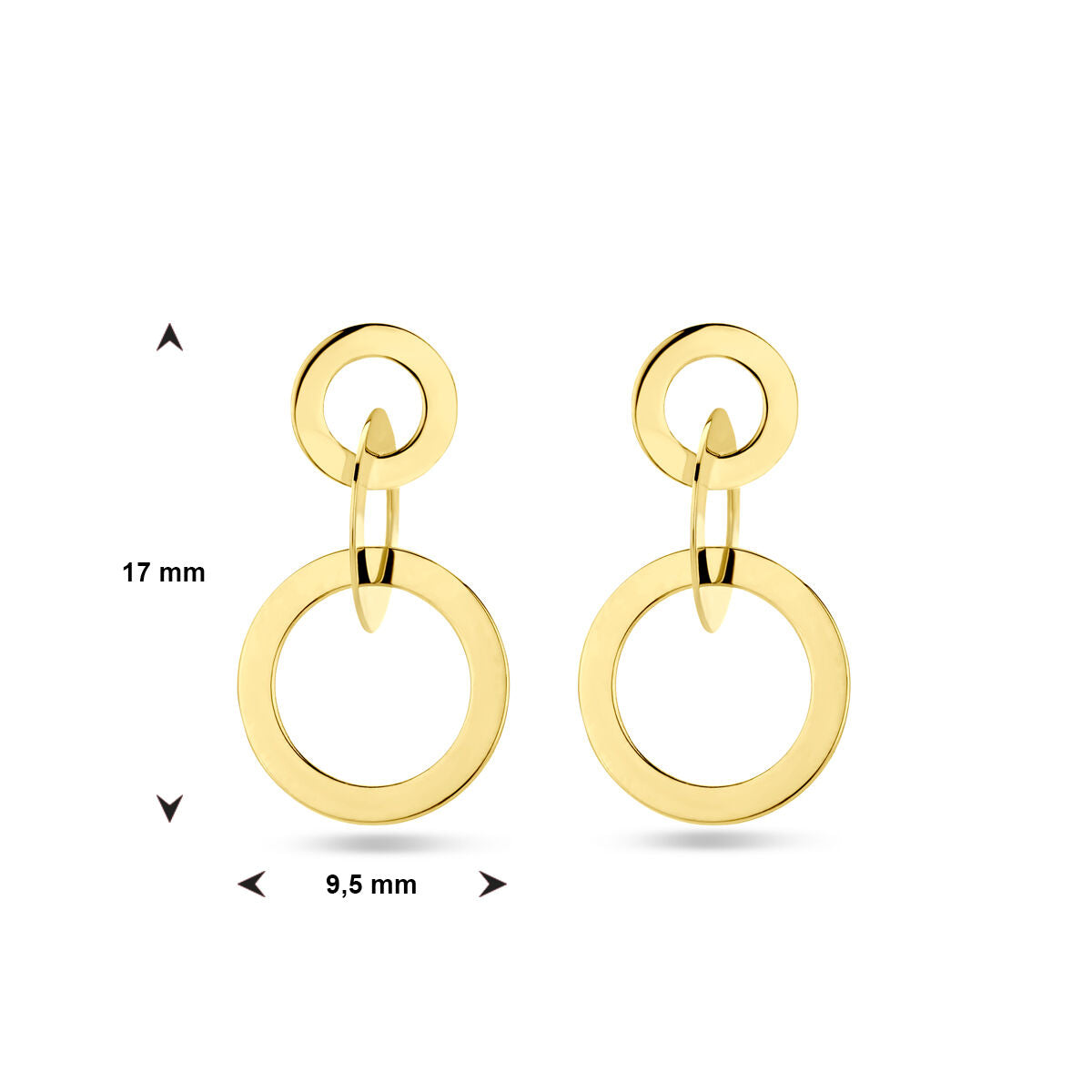 14k yellow gold earrings with circles. The earrings have a size of 17x9.5mm.