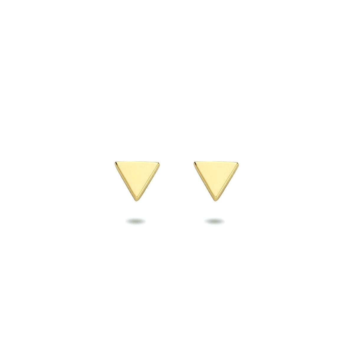 14k yellow gold ear studs in the shape of a triangle. The ear studs have a size of 3x3.5mm.