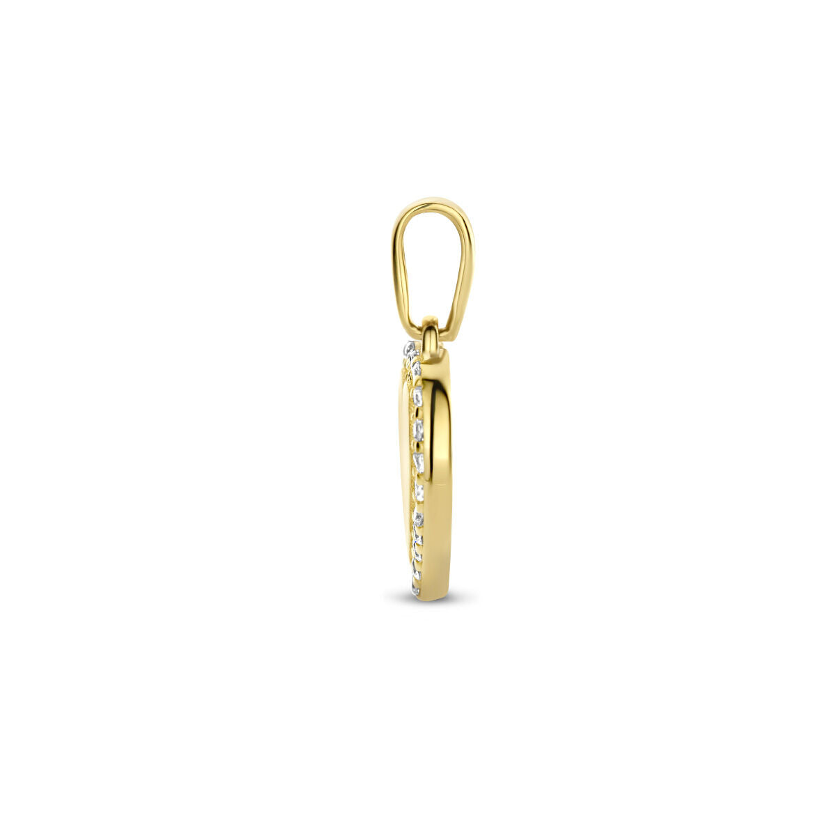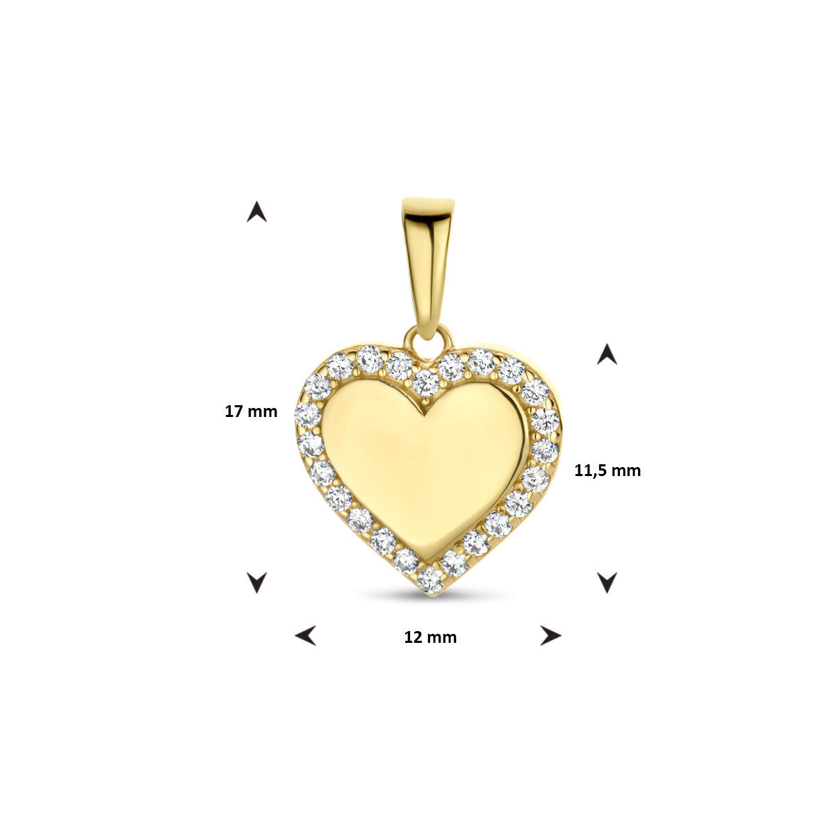 14k yellow gold pendant in the shape of a heart with a beautiful row of zirconia. The pendant has a total height of 17mm.