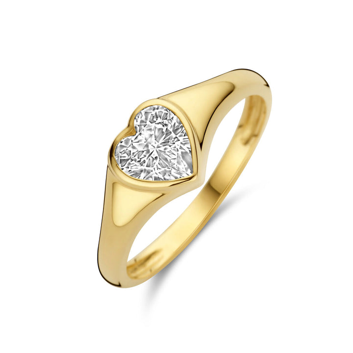 Deze elegante 14k geelgouden ring van Van der Kooij is een perfecte manier om je liefde of waardering te tonen. De ring is voorzien van een schitterende hartvormige zirkonia, die schittert met zijn transparante, sprankelende schoonheid. Het delicate ontwerp met de hartvormige steen benadrukt de romantische uitstraling van de ring, waardoor het een ideale keuze is voor een speciale gelegenheid of als cadeau voor iemand die je dierbaar is. Het warme geelgoud van de ring vormt een prachtig contrast met de heldere zirkonia, waardoor het ontwerp extra opvalt.